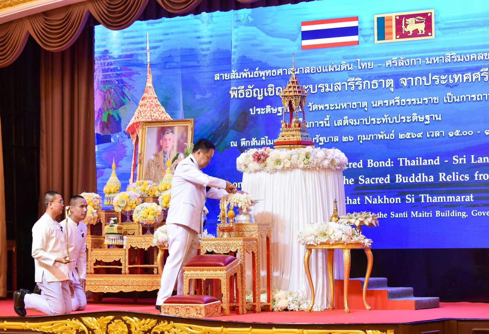 นายกรัฐมนตรี เป็นประธานในพิธีอัญเชิญพระบรมสารีริกธาตุจากศรีลังกา ประดิษฐานชั่วคราว ณ ทำเนียบรัฐบาล ก่อนนำไปประดิษฐานเป็นการถาวร ณ วัดพระมหาธาตุวรมหาวิหาร จังหวัดนครศรีธรรมราช ท่ามกลางบรรยากาศที่เปี่ยมด้วยความเลื่อมใสศรัทธา สะท้อนสายสัมพันธ์พระพุทธศาสนาไทย – ศรีลังกาอย่างแน่นแฟ้น