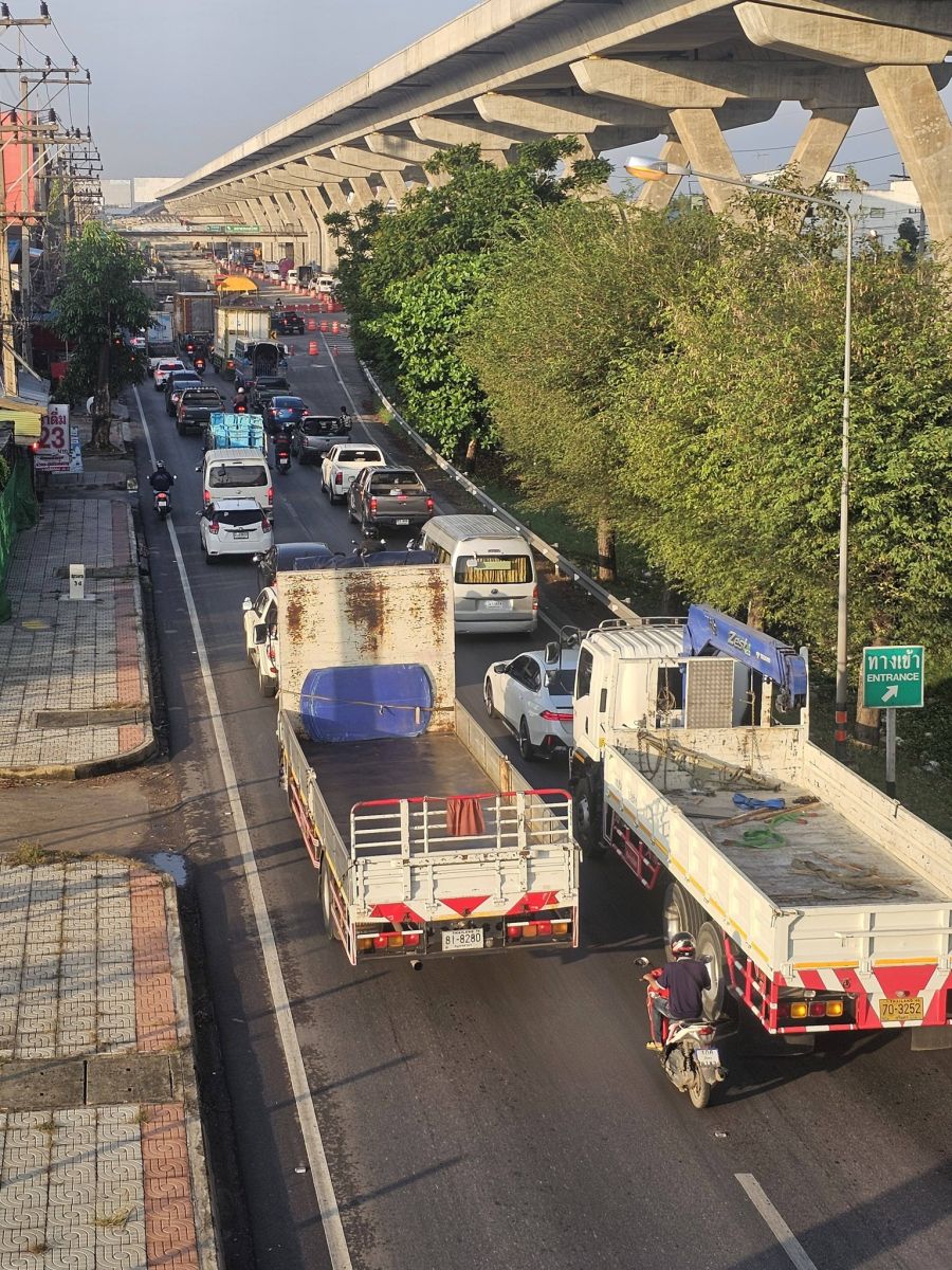 ถนนพระราม 2 ขาเข้า มุ่งหน้าขึ้นสะพานข้ามแม่น้ำท่าจีน รถติดมาก ท้ายแถวสะสมอยู่ที่เยื้อง รพ.วิภาราม สมุทรสาคร ส่วนฝั่งขาออก ท้ายแถวสะสมอยู่ที่หน้า รพ.มหาชัย #รายงานจราจร #รถติด #พระรามสอง #FM91