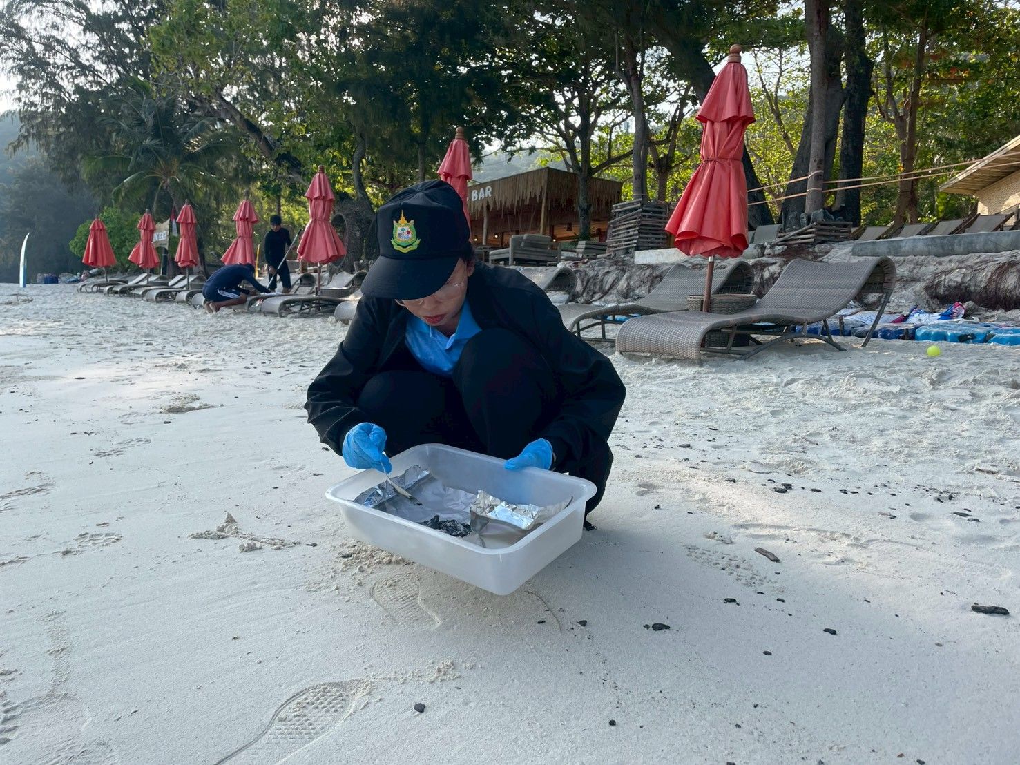 ด้านสำนักงานสิ่งแวดล้อมและควบคุมมลพิษที่ 15 (สคพ.15) รายงานว่า ได้ร่วมกับ สำนักงานป้องกันและบรรเทาสาธารณภัยจังหวัดภูเก็ต หน่วยงานในสังกัด กรมทรัพยากรทางทะเลและชายฝั่ง ศูนย์อำนวยการรักษาผลประโยชน์ของชาติทางทะเล ภาค 3 กองทัพเรือภาคที่ 3 และ เทศบาลตำบลราไวย์ ลงพื้นที่เกาะเฮเพื่อทำความสะอาดชายหาดที่ได้รับผลกระทบจากก้อนน้ำมัน พร้อมให้คำแนะนำเรื่องการเก็บรวบรวมและพักรอก่อนกำจัดอย่างถูกวิธี จากการสำรวจเมื่อวันที่ 26 กุมภาพันธ์ 2569 พบก้อนน้ำมันขนาดเล็กกระจายทั่วชายหาดเกาะเฮแต่ไม่หนาแน่น และพบลอยกระจายบางส่วนในทะเล จึงได้เก็บตัวอย่างน้ำทะเล ตะกอนทราย และก้อนน้ำมัน ส่งตรวจวิเคราะห์ในห้องปฏิบัติการ พร้อมบันทึกภาพมุมสูงไว้เป็นข้อมูล