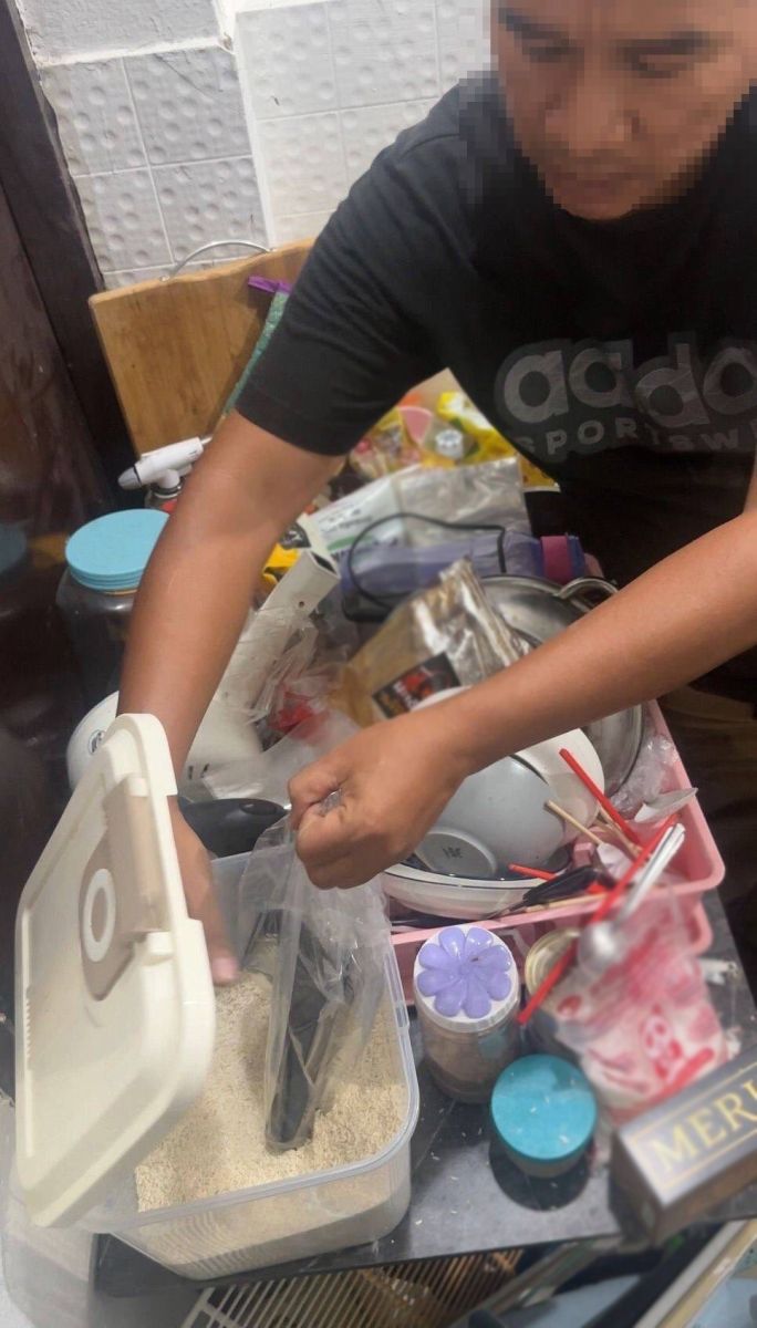 เจ้าหน้าที่จึงคุมตัวนายนอ ไปชี้จุดซ่อนของกลาง จากการตรวจค้นพบอาวุธปืนยี่ห้อ RUGER รุ่น SR9c ขนาด 9 มม. จำนวน 1 กระบอก,เครื่องกระสุนขนาด 9 มม. จำนวน 4 นัด (บรรจุในแม็กกาซีน) โดยของกลางทั้งหมดถูกห่อด้วยถุงพลาสติกใสซุกอยู่ในถังข้าวสารตามคำสารภาพ