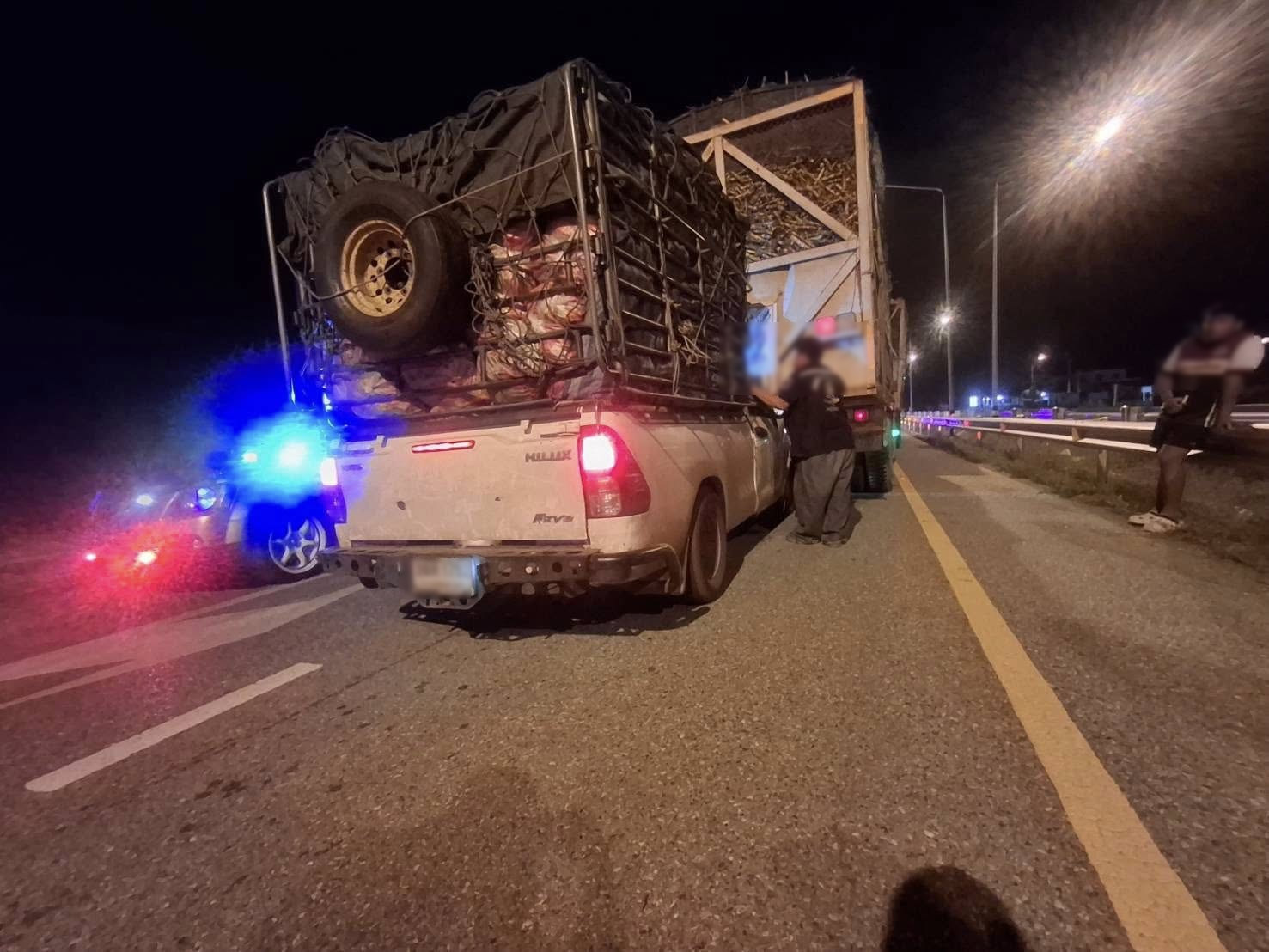 รถกระบะ ชนเข้าท้ายรถบรรทุกอ้อย กลางถนนหมายเลข 11 หนุ่มคนขับเสียชีวิตติดค้างในยานพาหนะ จ.พิษณุโลก