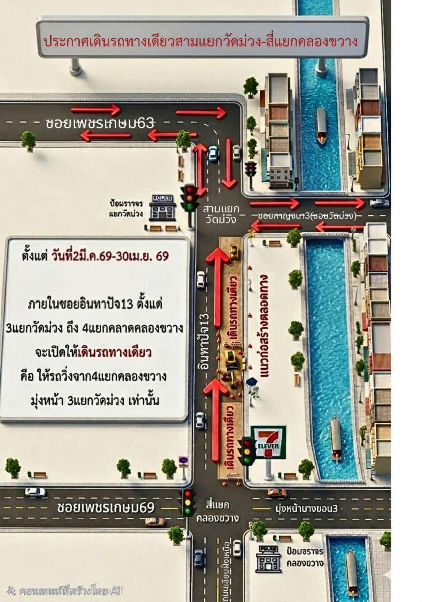 โดยจะให้สัญจรจากสี่แยกคลองขวางไปทางสามแยกวัดม่วงเท่านั้น ใครที่อยู่ในซอยอินทาปัจ 13 หรือต้องใช้เส้นทางนี้ วางแผนการเดินทางกันดีๆ