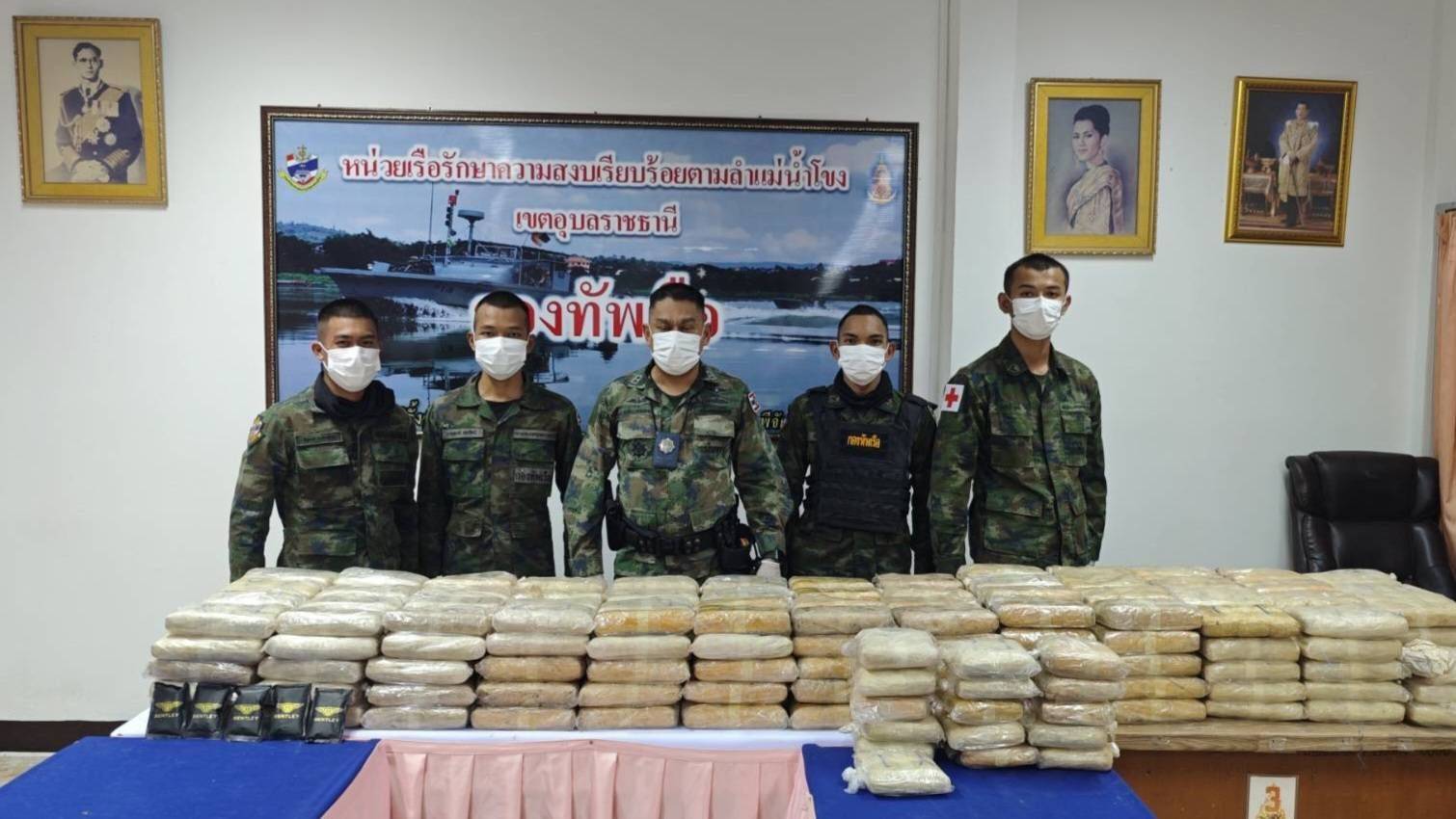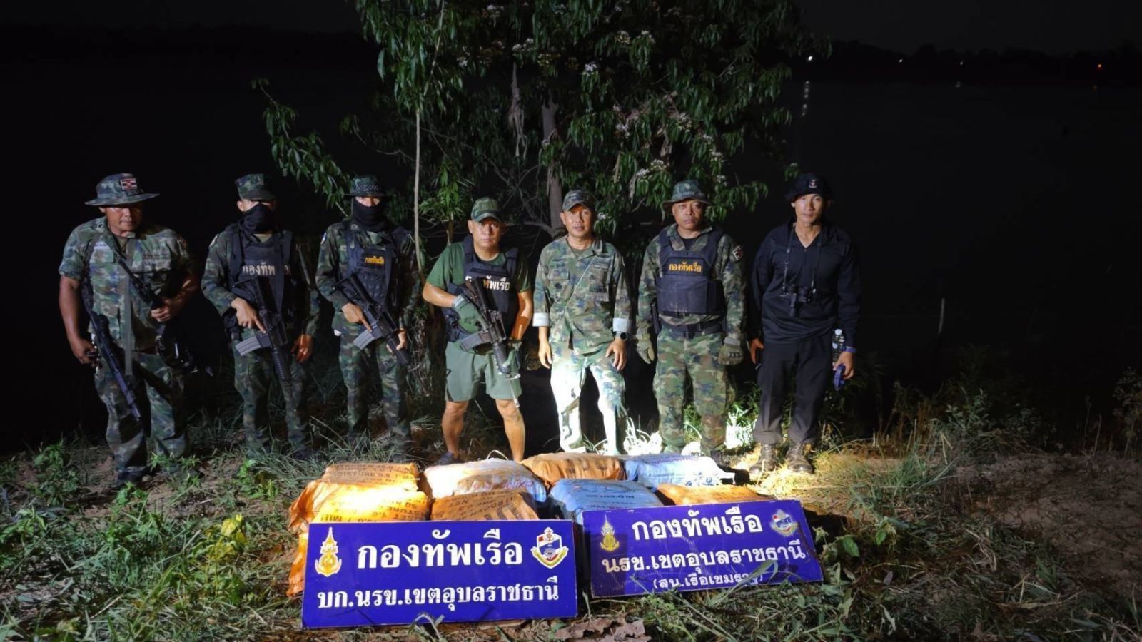 พลเรือตรี ปารัช รัตนไชยพันธ์ โฆษกกองทัพเรือ เปิดเผยว่า เมื่อช่วงค่ำวันที่ (2 มีนาคม 2569) เวลา 19.30 น. หน่วยเรือรักษาความสงบเรียบร้อยตามลำน้ำโขง (นรข.) เขตอุบลราชธานี ได้บูรณาการข้อมูลด้านการข่าวและการลาดตระเวนเชิงรุกตามแนวชายแดนทางน้ำ บริเวณพื้นที่ริมแม่น้ำโขง บริเวณบ้านอูบมุง ตำบลเขมราฐ อำเภอเขมราฐ จังหวัดอุบลราชธานี หลังได้รับข้อมูลข่าวสารเกี่ยวกับความเคลื่อนไหวของเครือข่ายลักลอบลำเลียงยาเสพติดข้ามชาติที่ใช้เส้นทางธรรมชาติหลบเลี่ยงการตรวจจับ จากการเข้าตรวจสอบ พบยาเสพติดให้โทษประเภท 1 (ยาบ้า) จำนวน 8 กระสอบ ประมาณ 1,600,000 เม็ด และวัตถุต้องสงสัยบรรจุซอง จำนวน 5 ซอง อยู่ระหว่างการพิสูจน์ทราบ โดยกลุ่มผู้กระทำความผิดอาศัยความชำนาญพื้นที่และช่วงเวลาความมืดหลบหนีไปได้ หน่วยจึงได้ตรวจยึดของกลางทั้งหมดนำกลับกองบังคับการ นรข.เขตอุบลราชธานี เพื่อดำเนินการตรวจนับอย่างละเอียดและขยายผลตามกระบวนการข่าวกรองและกฎหมายต่อไป
