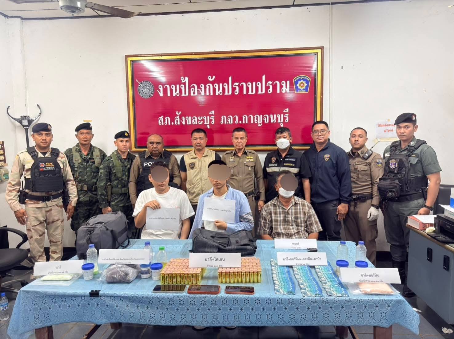 โดยวันนี้ (5 มี.ค. 69) พ.ต.อ. สันติ พิทักษ์สกุล ผกก.สภ.สังขละบุรี ,ตชด., ฝ่ายปกครองสังขละบุรี ได้รับรายงานจากสายลับว่าจะมีแก๊งค์คอลเซ็นเตอร์ หรือจีนเทา ใช้เส้นทางจ.กาญจนบุรี ด่านเจดีย์สามองค์ หลบหนีข้ามไปยังเมียนมา เจ้าหน้าที่ได้วางแผนจับกุม จนกระทั่งจับกุมได้ที่ปั๊มน้ำมันแห่งหนึ่ง ในตัวอำเภอสังขละบุรี โดยกลุ่มคนร้ายขับขี่รถยนต์โตโยต้า สีดำ ตามที่สายลับได้รายงาน