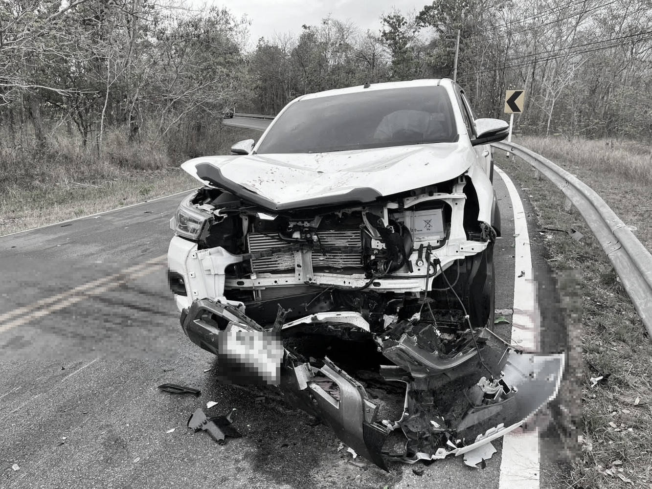 ที่เกิดเหตุ พบรถจักรยานยนต์ คาวาซากิ นินจา สีเขียว ไม่พบป้ายทะเบียน ล้มคว่ำอยู่กลางถนน และใกล้กัน พบรถกระบะ โตโยต้า สีขาว ป้ายทะเบียน สกลนคร สภาพหน้ารถพังเสียหาย ที่ข้างรถฝั่งขวา พบร่างของผู้เสียชีวิต 1 ราย ตรวจสอบเอกสาร เป็นเด็กชาย อายุประมาณ 13 - 15 ปี สวมใส่ชุดนักเรียนเสื้อสีขาว กางเกงขาสั้นสีกากี