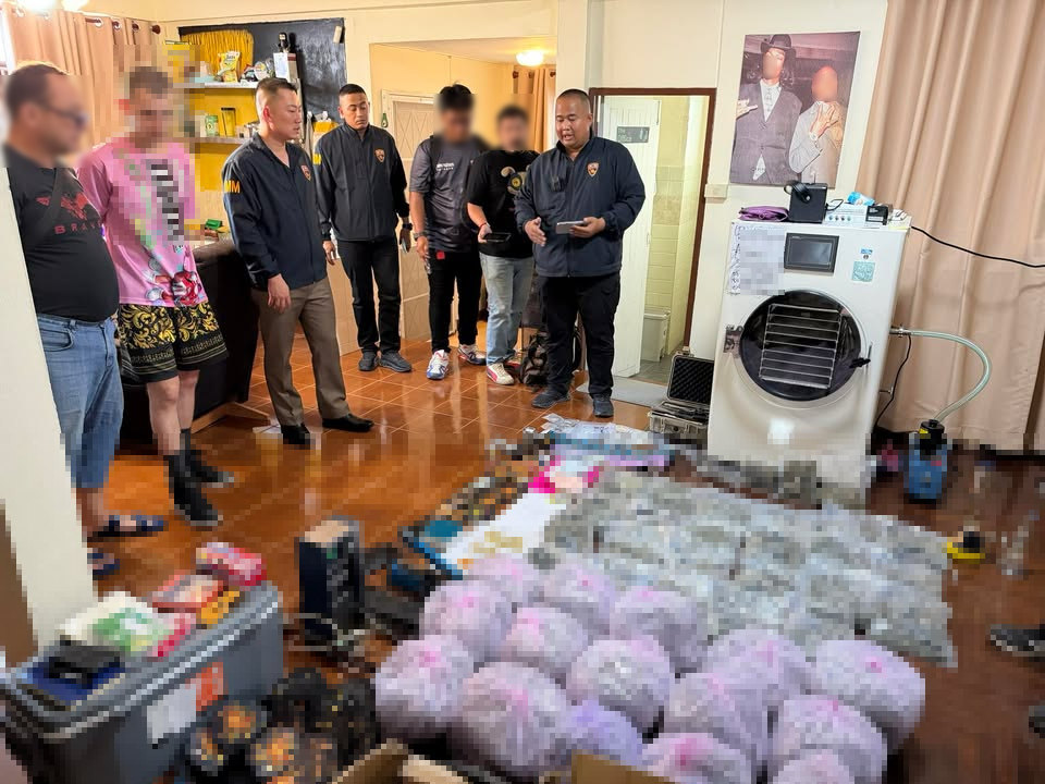 ขณะเดียวกัน จากการตรวจสอบภายในบ้านพักพบว่า ชั้น 2 ถูกแบ่งเป็นห้องพักส่วนตัว และห้องสำหรับจัดเก็บและสกัดช่อดอกกัญชา โดยเปิดเครื่องปรับอากาศตลอด 24 ชั่วโมง เพื่อควบคุมอุณหภูมิรักษาคุณภาพของช่อดอกกัญชา เจ้าหน้าที่จึงทำการตรวจยึดของกลางทั้งหมด ก่อนควบคุมตัวผู้ต้องหามาสอบสวนเพิ่มเติมที่ตรวจคนเข้าเมืองจังหวัดชลบุรี