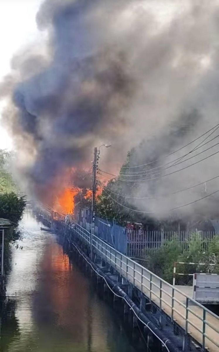 ไฟไหม้บ้านเรือน ชุมชนยานประชาอุทิศซอย 84 เพลิงลุกลามเสียหายรวม 6 หลัง ผู้บาดเจ็บ 1 รายนำส่ง รพ.