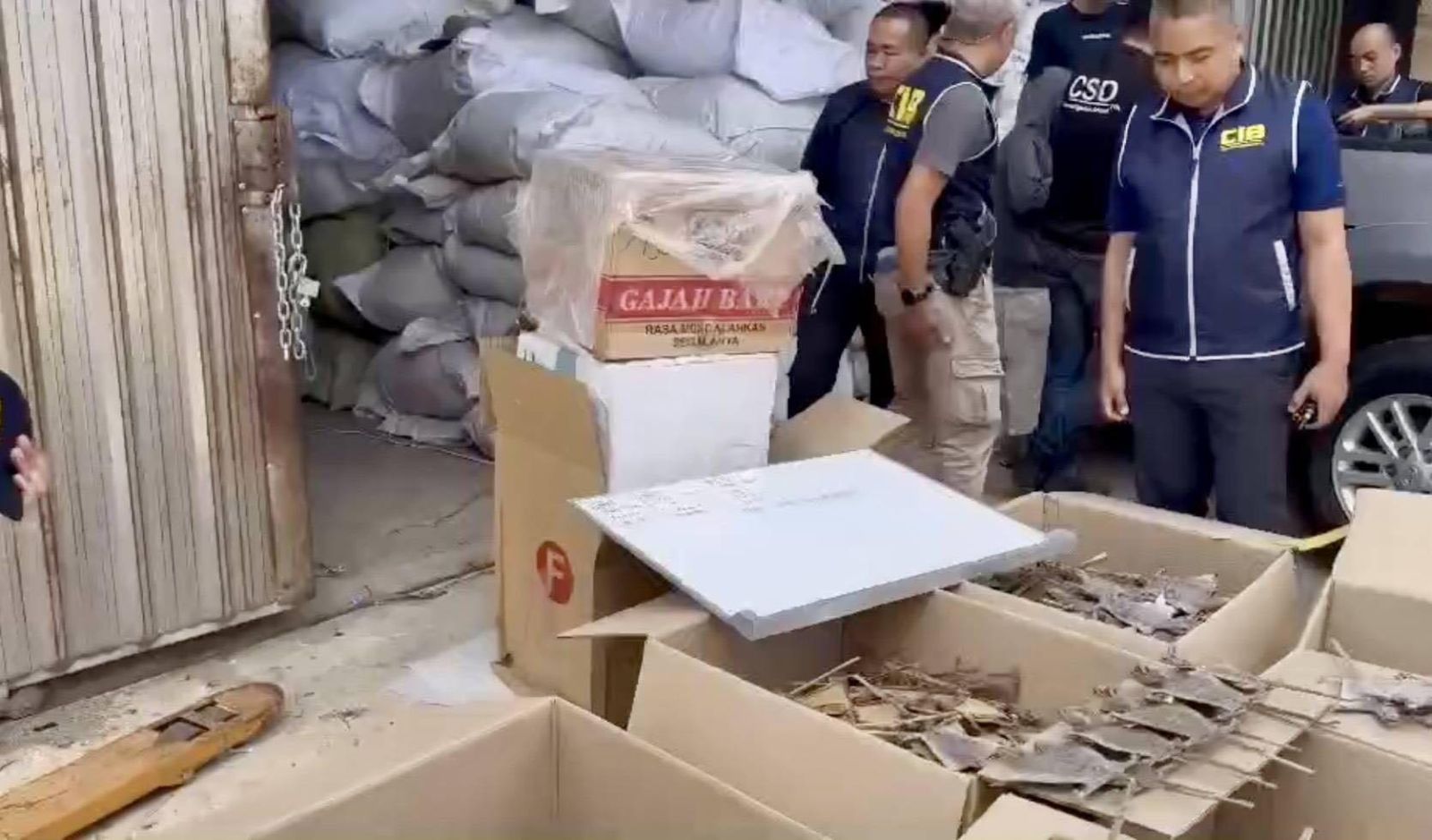 บุกทลายโกดังเถื่อนย่านปทุมธานี พบซากตุ๊กแกแห้ง, เศษไม้จันทร์หอม และไม้พยุง ซึ่งถูกลักลอบนำเข้ามาจากต่างประเทศ เพื่อรอส่งต่อประเทศที่ 3