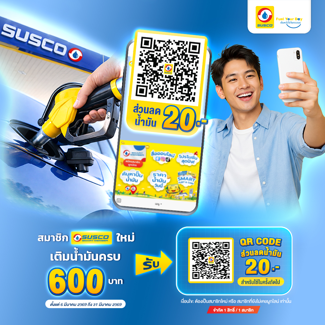 เพียง เติมน้ำมันครบ 600 บาท รับ QR Code ส่วนลด 20 บาท (สามารถใช้ได้ในครั้งถัดไป)จำกัด 1 สิทธิ์ / 1 สมาชิก