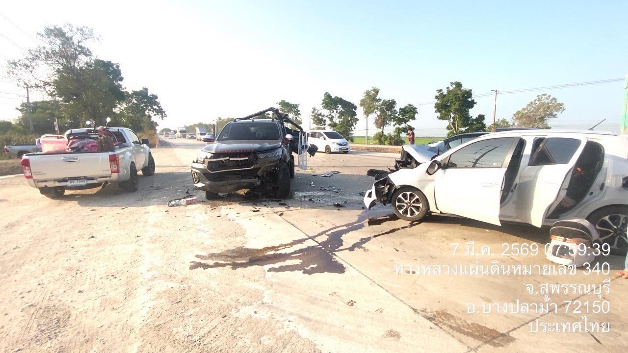 08.30 น. ถนนสาย 340 (บางบัวทอง-สุพรรณบุรี) ในพื้นที่ อ.บางปลาม้า จ.สุพรรณบุรี อุบัติเหตุซ้ำซ้อน ชนกันหลายคัน การจราจรติดขัดหนักมาก พื้นที่ความรับผิดชอบ สภ.บางปลาม้า #รายงานจราจร #รถติด #อุบัติเหตุ #สุพรรณบุรี #FM91
