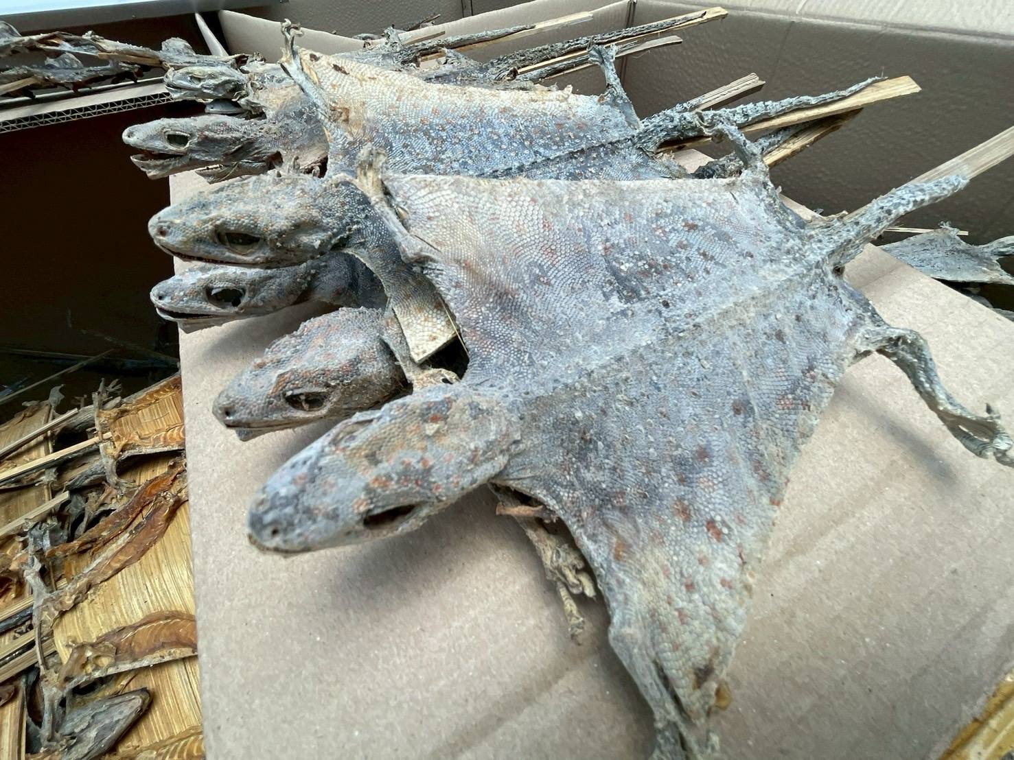 กรมอุทยานฯ ร่วมกับ ตำรวจ บก.ปทส. สนธิกำลังบุกโกดังลำลูกกา ยึดซากตุ๊กแกกว่า 1.2 แสนตัว ขยายผลขบวนการค้าสัตว์ป่าข้ามชาติ