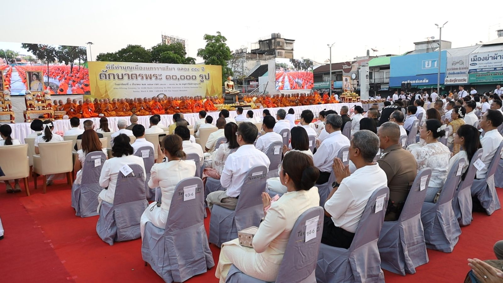 วันนี้ (8 มี.ค.69) เวลา 06.00 น. พระพรหมสิทธิ กรรมการมหาเถรสมาคม เจ้าคณะภาค 11 เจ้าอาวาสวัดสระเกศ ราชวรมหาวิหาร กรุงเทพมหานคร เป็นประธานสงฆ์ นายวิจิตร กิจวิรัตน์ รองผู้ว่าราชการจังหวัดนครราชสีมา (ผู้แทนผู้ว่าราชการจังหวัดนครราชสีมา) เป็นประธานฆราวาส ในพิธีตักบาตรพระสงฆ์ 10,000 รูป สมโภชเมืองนครราชสีมา 558 ปี