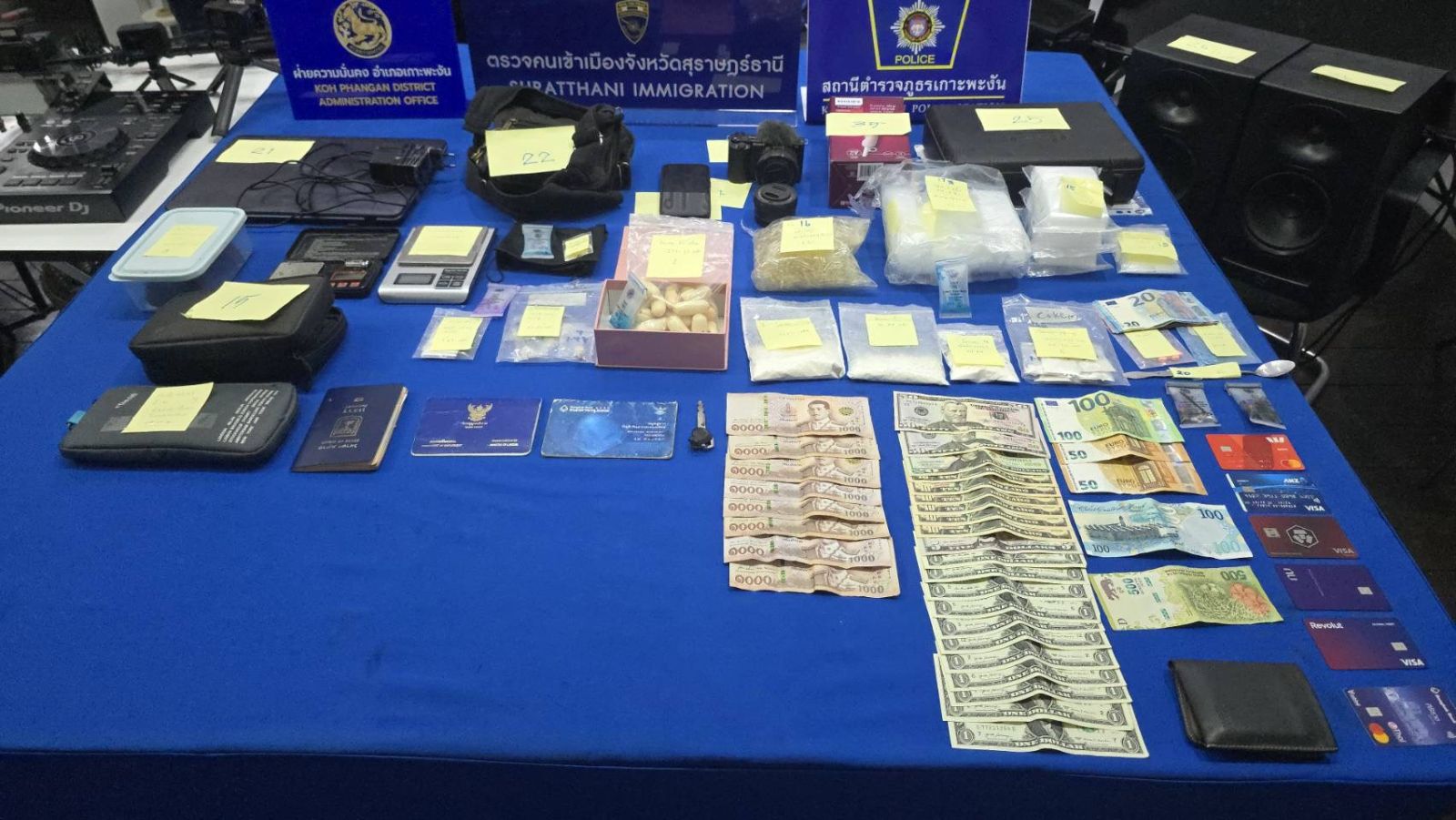 ต่อเจ้าหน้าที่ตรวจคนเข้าเมืองจังหวัดสุราษฎร์ธานี สภ.เกาะพะงัน ฝ่ายปกครองอำเภอเกาะพะงัน สามารถติดตามตัวนาย OR อายุ 31 ปี สัญชาติอิสราเอล ได้บริเวณซอยโคโคนัทเลน ต.เกาะพะงัน จึงนำตัวไปตรวจค้นห้องพัก พบของกลางยาเสพติดซุกซ่อนอยู่จำนวนมาก ได้แก่ โคเคน 389.35 กรัม (บางส่วนมีลักษณะเป็นก้อนกลม คาดว่าลักลอบนำเข้าโดยการกลืนลงท้อง) เอ็กซ์ตาซี (ทั้งแบบผงและเม็ด), เคตามีน, ยางกัญชา พร้อมด้วยอุปกรณ์สำหรับแบ่งบรรจุและจำหน่ายหลายรายการ เจ้าหน้าที่แจ้งข้อหาจำหน่ายและครอบครองยาเสพติดฯ