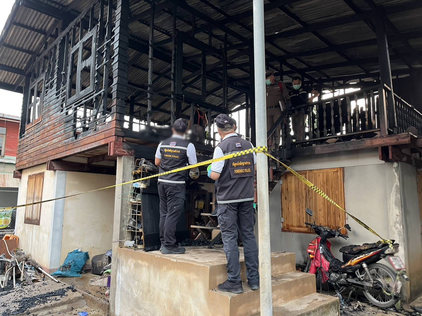 ที่เกิดเหตุ ลักษณะเป็นบ้าน 2 ชั้นครึ่งปูนครึ่งไม้ ทางเจ้าหน้าที่พร้อมด้วยรถดับเพลิงได้ดำเนินการฉีดน้ำจนเพลิงสงบ และตรวจสอบพบว่าชั้นที่ 2 ของบ้านได้รับความเสียหายทั้งหมด รถจักรยานยนต์ 1 คัน และมีผู้เสียชีวิต 1 ราย เป็นผู้หญิง อายุประมาณ 40 - 50 ปี สภาพร่างถูกไฟคลอกเป็นตอตะโก