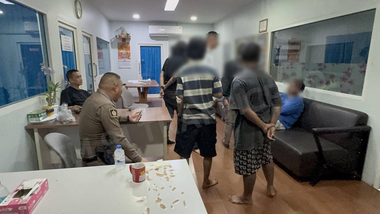 คืบหน้าเมื่อเวลา 02.00 น.วันที่ 11 มี.ค.69 ที่ห้องสืบสวน สภ.ไทรน้อย เจ้าหน้าที่ตำรวจชุดสืบสวนได้นำตัวกลุ่มผู้ต้องสงสัยที่บุกไปก่อเหตุจำนวน 8 คน เข้ามาสอบปากคำและชี้ยืนยันตัวตนตามภาพจากกล้องวงจรปิด นอกจากนี้ยังนำรถยนต์ ยี่ห้อฮอนด้า รุ่นซีวิค สีบรอนซ์ ทะเบียน นนทบุรี สภาพด้านหน้ามีร่องรอยถูกปาระเบิดใส่ ที่เบาะหลังมี่คราบเลือด รถกระบะยี่ห้อนิสสัน สีบรอนซ์ ทะเบียน กทม. และรถจยย.จำนวน 2 คัน ซึ่งเป็นรถของกลางที่ใช้ขับไปก่อเหตุมาตรวจสอบเพื่อเก็บหลักฐาน