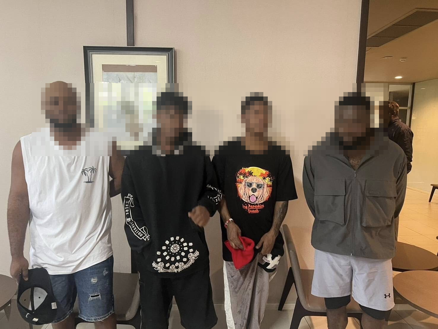 จากการตรวจค้นไม่พบสิ่งผิดกฎหมาย และได้ทำการจับกุมรวม 4 ราย เป็นผู้ชายสัญชาติไนจีเรีย อายุ 23 ปี, อายุ 26 ปี และอายุ 35 ปี ได้แจ้งข้อหา คนต่างด้าวเดินทางเข้ามาและอยู่ในราชอาณาจักรโดยการอนุญาตสิ้นสุด (โอเวอร์สเตย์)
