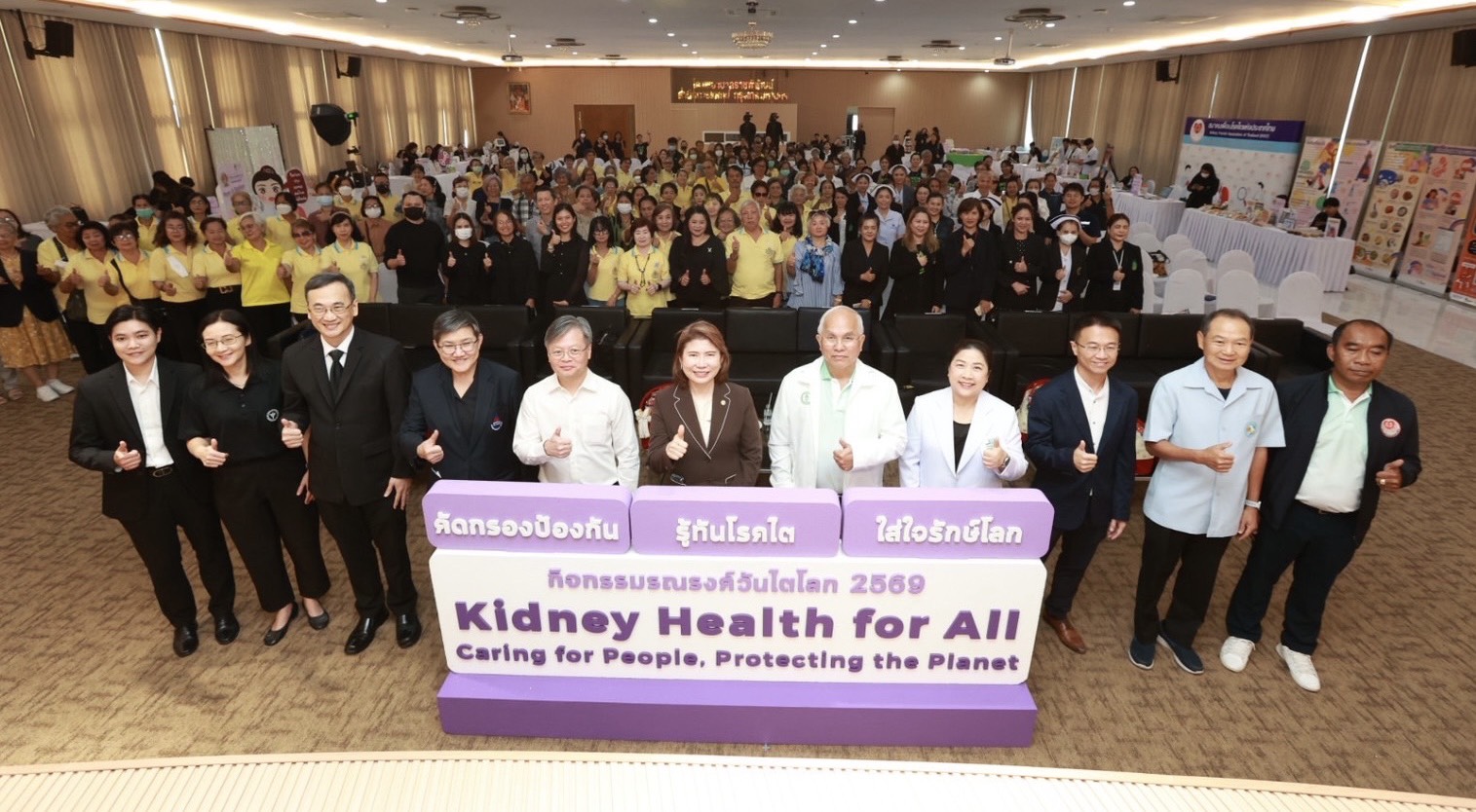 ด้าน นายแพทย์กฤษฎา หาญบรรเจิด ผู้อำนวยการกองโรคไม่ติดต่อ กรมควบคุมโรค กล่าวว่า สมาคมโรคไตนานาชาติได้กำหนดให้วันพฤหัสบดีที่ 2 ของเดือนมีนาคมของทุกปีเป็นวันไตโลก (World Kidney Day) โดยในปีนี้ตรงกับวันที่ 12 มีนาคม 2569 ซึ่งประเทศไทยได้กำหนดคำขวัญการรณรงค์ว่า “คัดกรองป้องกัน รู้ทันโรคไต ใส่ใจรักษ์โลก” เพื่อเน้นย้ำให้ประชาชนตระหนักถึงความสำคัญของการป้องกันและการตรวจคัดกรองโรคไตเรื้อรัง