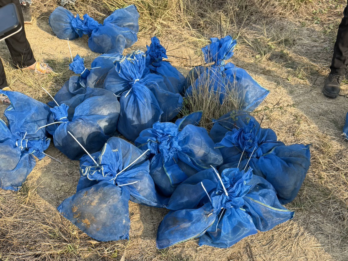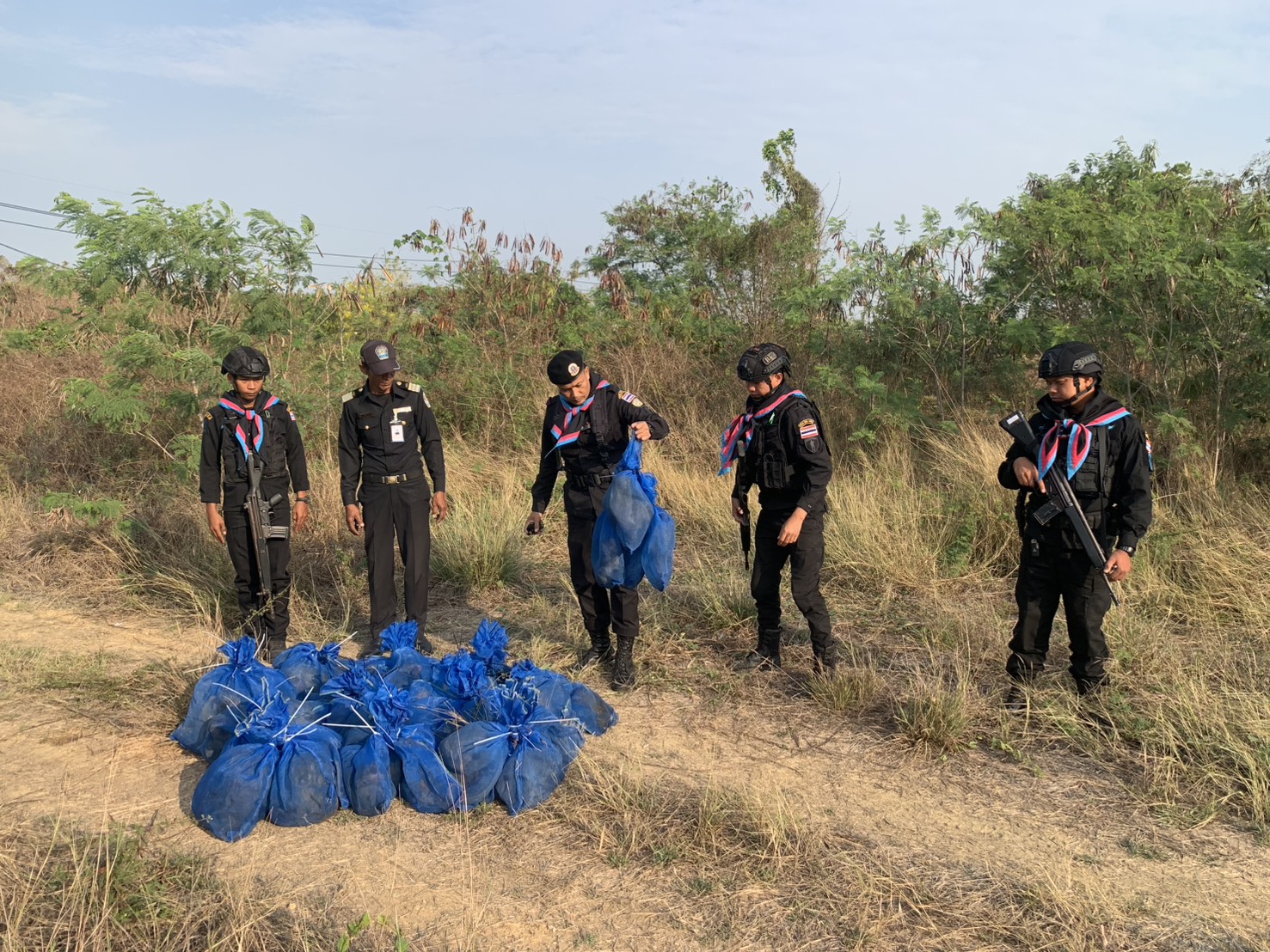 ระหว่างปฏิบัติหน้าที่บริเวณไร่อ้อย ระหว่างจุดตรวจ อ.67 – อ.68 บ้านหนองปรือ หมู่ 7 ตำบลผ่านศึก อำเภออรัญประเทศ จังหวัดสระแก้ว ซึ่งอยู่ห่างจากแนวชายแดนประมาณ 300 เมตร เจ้าหน้าที่พบถุงตาข่ายสีฟ้าจำนวนหลายถุงวางซุกซ่อนอยู่ในป่าอ้อย