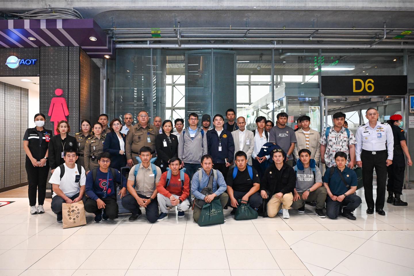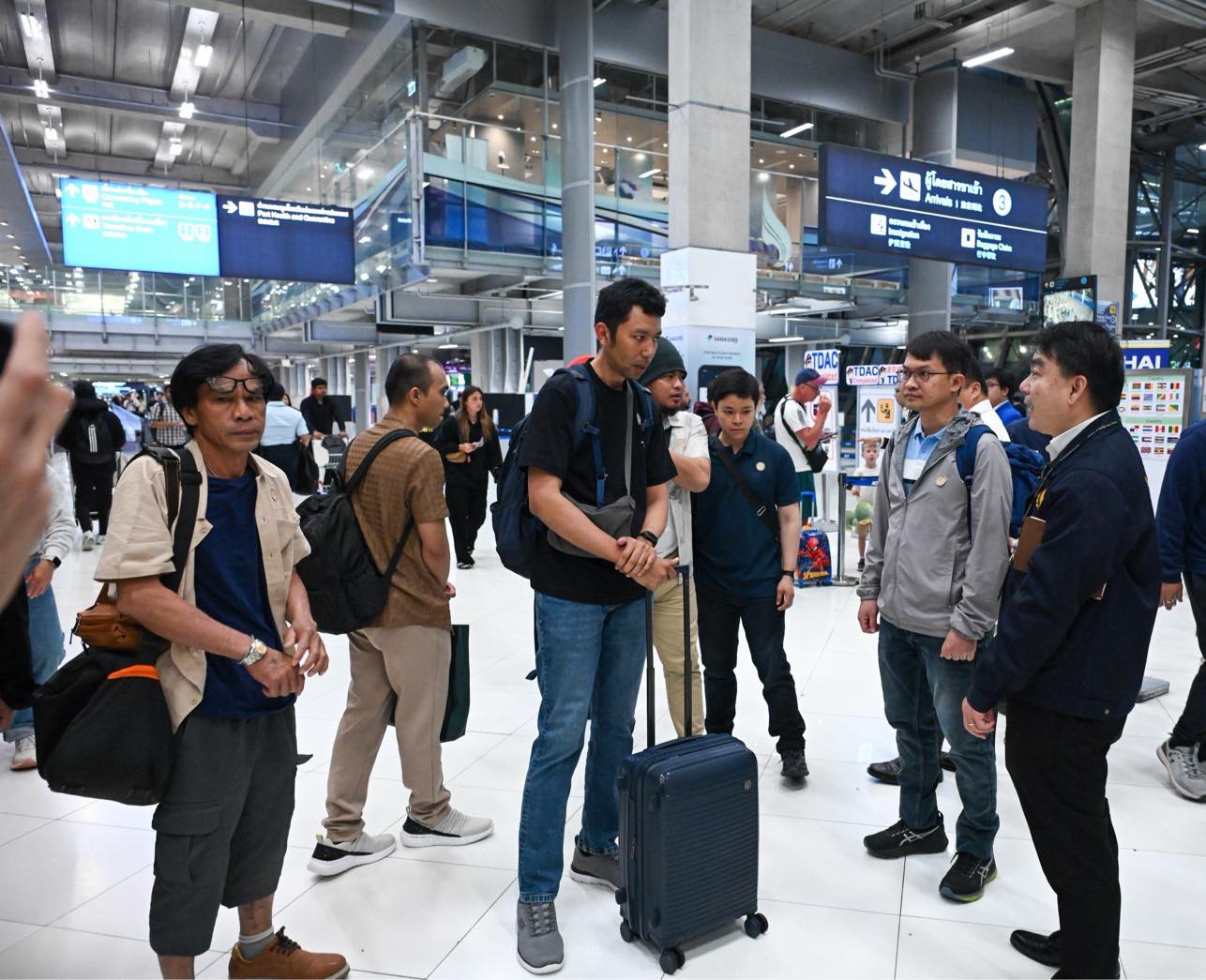 On 16 March 2025, Mr. Bancha Yuenyongchongcharoen, Deputy Director-General of the Consular Department, and Mrs. Maratee Nalita Andamo, Deputy Director-General of the Department of Information and Deputy Spokesperson of the Ministry of Foreign Affairs, together with Mr. Phichet Tongpan, Deputy Permanent Secretary of the Ministry of Labor, and Mr. Pongtep Phetsom, Deputy Director-General of the Department of Labor Protection and Welfare, Ministry of Labor, welcomed 20 Thai crew members of the “Mayuree Naree” vessel, who returned to Thailand today at Suvarnabhumi Airport.