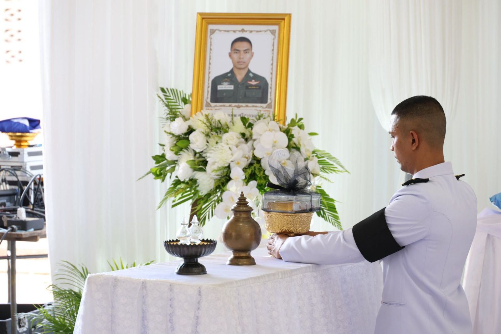 วันนี้ (17 มีนาคม 2569) เวลา 15.30 น. ณ ศาลาบำเพ็ญกุศล วัดแหลมวัง ตำบลคูขุด อำเภอสทิงพระ จังหวัดสงขลา พระบาทสมเด็จพระเจ้าอยู่หัว ทรงพระกรุณาโปรดเกล้าโปรดกระหม่อม ให้พลตำรวจโท ปิยะวัฒน์ เฉลิมศรี บัญชาการตำรวจภูธรภาค 9 เป็นประธานในพิธีพระราชทานน้ำหลวงอาบศพแก่ สิบตำรวจเอก วราเทพ ศรีสุวรรณชนะ ผู้บังคับหมู่ กองกำกับการตำรวจตระเวนชายแดนที่ 43 ซึ่งถูกยิงได้รับบาดเจ็บสาหัส และเสียชีวิตในเวลาต่อมา ขณะปฏิบัติหน้าที่เข้าบังคับใช้กฎหมายในพื้นที่ตำบลตุยง อำเภอหนองจิก จังหวัดปัตตานี เมื่อวันที่ 16 มีนาคม 2569