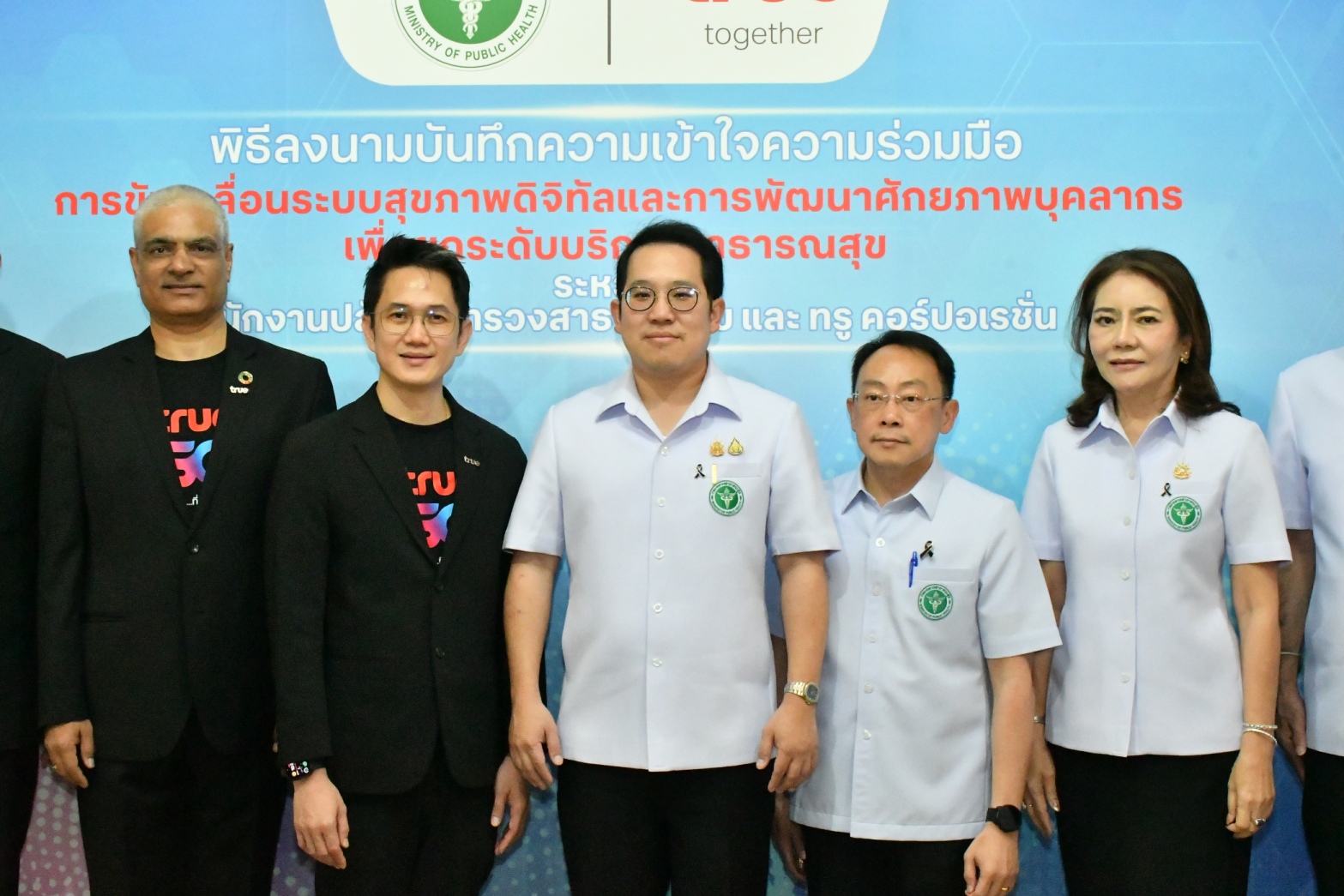 ดร.ธีรเดช ดำรงค์พลาสิทธิ์ หัวหน้าคณะผู้บริหารด้านกลุ่มธุรกิจองค์กร บมจ. ทรู คอร์ปอเรชั่น กล่าวว่า “ทรู คอร์ปอเรชั่น มีความยินดีที่กระทรวงสาธารณสุขไว้วางใจให้เราเป็นพันธมิตรร่วมพัฒนาระบบบริการสุขภาพดิจิทัล ขับเคลื่อนการทรานสฟอร์มภาคสาธารณสุขไทยสู่ดิจิทัลเต็มรูปแบบ สะท้อนความแข็งแกร่งของทรู คอร์ปอเรชั่น ในฐานะผู้นำเทเลคอม-เทคคอมปานีไทย โดย ทรู จะนำโครงสร้างพื้นฐานโทรคมนาคมและศักยภาพการให้บริการดิจิทัล ผสานเทคโนโลยีและความเชี่ยวชาญ ส่งเสริมการสร้างสรรค์นวัตกรรมระบบบริการสุขภาพดิจิทัลของกระทรวงสาธารณสุข โดยมี “หมอพร้อม Super App” ซึ่งปัจจุบันมีผู้ใช้งานกว่า 26 ล้านคน เป็นศูนย์กลางข้อมูลสุขภาพดิจิทัล อีกทั้งยังพร้อมขยายความร่วมมือ ต่อยอดสร้างระบบนิเวศสุขภาพที่สมบูรณ์แบบ ซึ่งหลอมรวมทั้งข้อมูล คน และเทคโนโลยี เข้าด้วยกันอย่างลงตัว ด้วยการผนวกอัจฉริยภาพของโครงสร้างพื้นฐานดิจิทัล และความสามารถในการวิเคราะห์ข้อมูลเชิงลึกด้วย AI ทำให้เกิดการบูรณาการข้อมูลสุขภาพอย่างเป็นระบบ พร้อมร่วมยกระดับทักษะดิจิทัล เพิ่มขีดความสามารถของบุคลากรกระทรวงสาธารณสุข เพื่อร่วมผลักดันยุทธศาสตร์สุขภาพดิจิทัลของกระทรวงสาธารณสุขให้ก้าวข้ามทุกขีดจำกัด มุ่งสู่เป้าหมายการเป็นศูนย์กลางนวัตกรรมสุขภาพระดับภูมิภาค และสร้างคุณภาพชีวิตที่ดีขึ้นอย่างยั่งยืนให้กับคนไทยทุกคน”