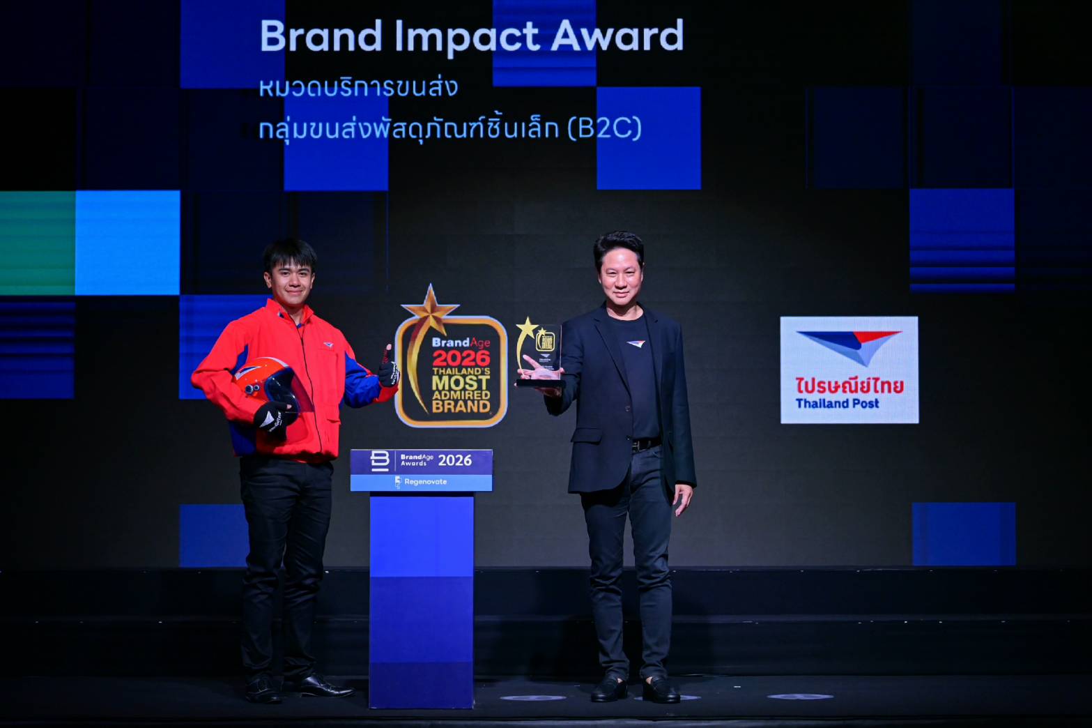 นอกจากรางวัลด้านความน่าเชื่อถือแล้ว ไปรษณีย์ไทยยังได้รับรางวัล “Brand Impact Award” ในฐานะแบรนด์ที่มีความโดดเด่นเป็นพิเศษจากการดำเนินกิจกรรมทางการตลาดและการส่งเสริมการตลาดอย่างมีประสิทธิภาพ สะท้อนศักยภาพการบริหารแบรนด์เชิงกลยุทธ์ที่สามารถเชื่อมโยงการสื่อสาร การพัฒนาบริการ และการสร้างประสบการณ์ลูกค้าเข้าด้วยกันอย่างเป็นระบบ ตอกย้ำว่าไปรษณีย์ไทยไม่ได้เป็นเพียงผู้ให้บริการโลจิสติกส์ แต่เป็นแบรนด์ที่ขับเคลื่อนเศรษฐกิจชุมชนและดิจิทัลอีโคโนมีของประเทศได้เป็นอย่างดี