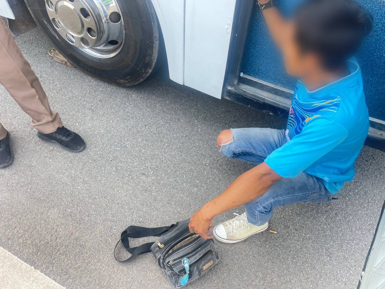 โดย​ขณะที่ตำรวจชุดจับกุมได้ออกตรวจป้องกันเหตุอาชญากรรม กวดขันวินัยจราจร บริเวณถนนหลวงหมายเลข 304 กม.177 จ.ปราจีนบุรี (จุดกลับรถเกือกม้าหนองกี่) ได้มีรถบัสโดยสารไม่ประจำทาง ทะเบียน กทม. จอดขวางช่องทางการจราจรอยู่ ตำรวจจึงเข้าไปตรวจสอบ พบคนขับนั่งอยู่ข้างรถ ตำรวจสอบถามว่ารถเป็นอะไร โดยคนขับตอบว่ารถน้ำมันหมด แต่ท่าทีมีพิรุธ ตำรวจจึงขอตรวจใบอนุญาตขับขี่