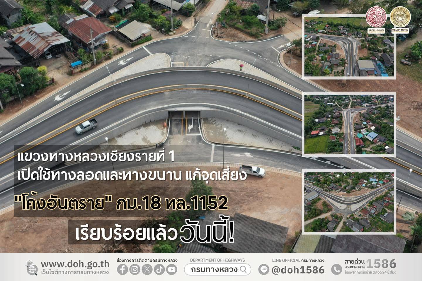 กรมทางหลวง โดยแขวงทางหลวงเชียงรายที่ 1 สำนักงานทางหลวงที่ 2 (แพร่) ได้ดำเนินการโครงการปรับปรุงจุดเสี่ยงและบริเวณอันตรายบนทางหลวง เพื่อเปลี่ยนพื้นที่ที่เคยเกิดอุบัติเหตุซ้ำซาก ให้กลายเป็นเส้นทางที่ปลอดภัยและอุ่นใจสำหรับพี่น้องประชาชนอย่างยั่งยืน