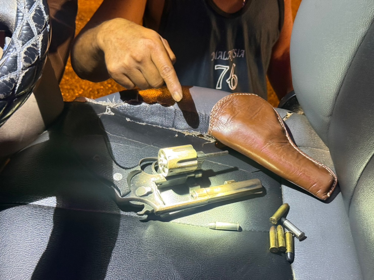 ผลการตรวจสอบ พบอาวุธปืนพกสั้นลูกโม่ ขนาด .38 ซุก อยู่ในซองหนังสีน้ำตาล โดยปืนกระบอกดังกล่าว ได้ถูกทำลายลบเลขทะเบียนทิ้ง พร้องบรรจุกระสุนคาโม่ไว้ 6 นัด นายอัม (นามสมมุติ) อายุ 49 ปี ยอมรับว่าปืนและกระสุนทั้งหมดเป็นของตัวเอง เจ้าหน้าที่ตำรวจชุดจับกุม ได้แจ้งข้อกล่าวหาให้ นายอัม (นามสมมุติ) อายุ 49 ปี ทราบ และแจ้งสิทธิ์ของผู้ต้องหาให้ทราบ ก่อนคุมตัวส่งพนักงานสอบสวน สภ.เสวียด จ.สุราษฎร์ธานี ดำเนินคดีตามกฎหมายต่อไป เบื้องต้น นายอัม (นามสมมุติ) อายุ 49 ปี รับว่าตนเอง "เคยรับราชการทหาร" มาก่อนแต่ได้ลาออกไปแล้ว ส่วนสาเหตุที่ต้องหาปืนเถื่อนมาบรรจุกระสุนพร้อมยิงติดรถไว้นั้น เจ้าตัวอ้างว่าก่อนหน้านี้เคยมีปัญหาทะเลาะวิวาทกับผู้อื่นมาก่อนจึงต้องพกอาวุธปืนติดตัวไว้เพื่อป้องกันตัว