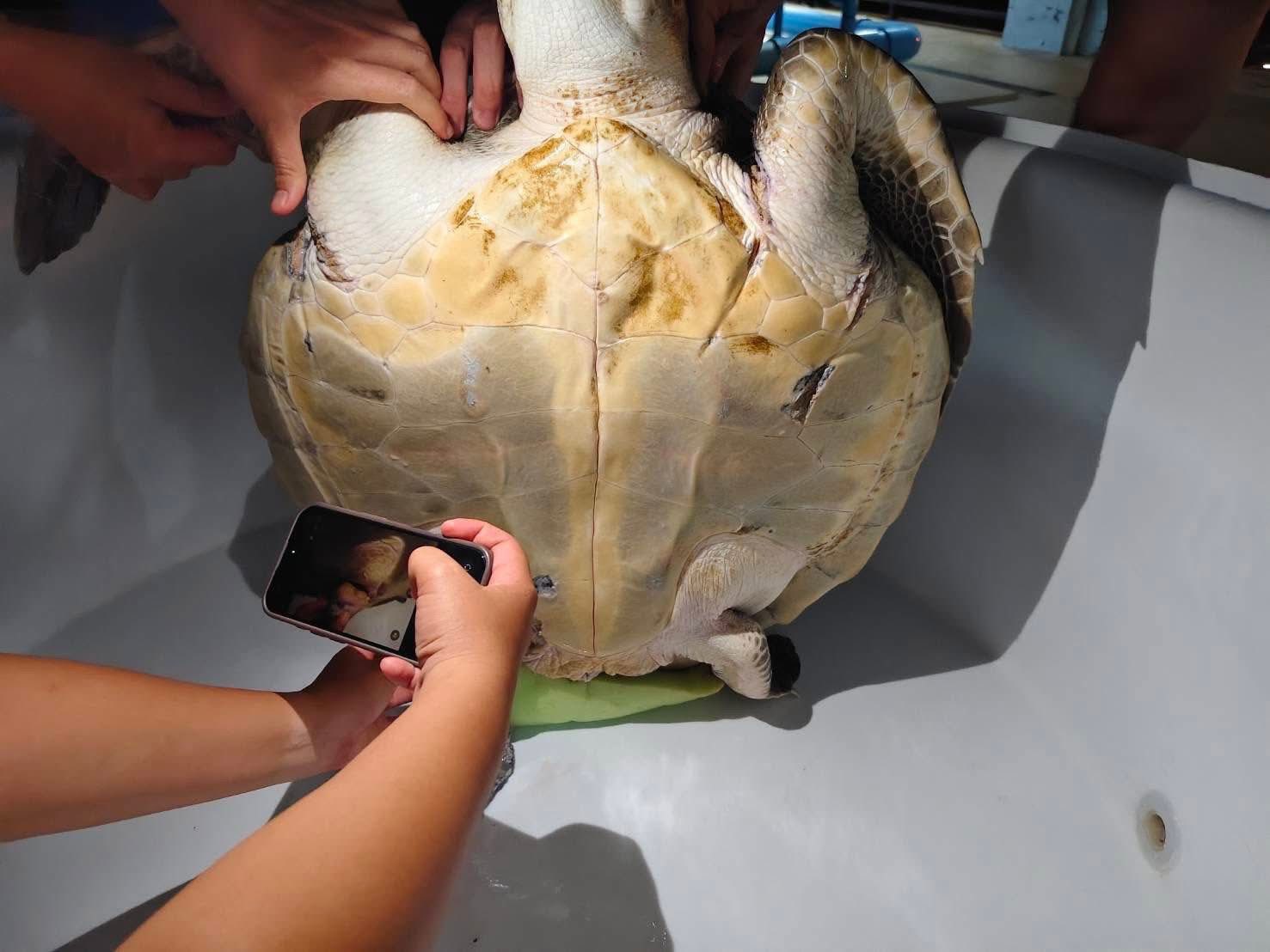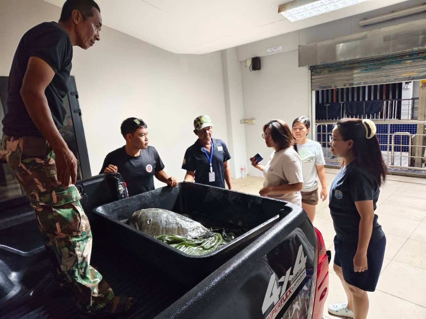 ส่งต่อถึงมือหมอ: เวลา 20.00 น. เจ้าหน้าที่ได้นำส่งเต่าทะเลถึงศูนย์ช่วยชีวิตสัตว์ทะเลหายากสิรีธาร จังหวัดภูเก็ต เป็นที่เรียบร้อย จากการตรวจสอบเบื้องต้นโดยสัตวแพทย์ พบว่าเป็น “เต่าหญ้า” (Olive ridley turtle) มีบาดแผลหลายจุด ซึ่งขณะนี้อยู่ภายใต้การดูแลอย่างใกล้ชิดของทีมแพทย์
