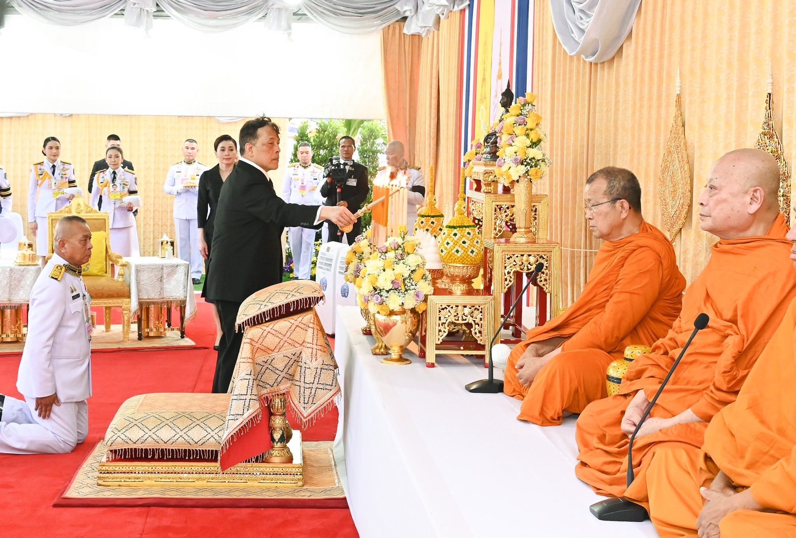 จากนั้น พระบาทสมเด็จพระเจ้าอยู่หัว เสด็จออกจากพลับพลาพิธี ไปยังแท่นพิธี ทรงกดปุ่มไฟฟ้าเปิดแพรคลุมป้าย "มูลนิธิพระดาบส" ทรงประเคนจตุปัจจัยไทยธรรมถวายพระสงฆ์ ทรงหลั่งทักษิโณทก และ พระราชทานเข็มที่ระลึกมูลนิธิพระดาบส แก่ ผู้ให้การสนับสนุนการก่อสร้างอาคารมูลนิธิพระดาบส และโรงเรียนพระดาบสแห่งใหม่ ตามลำดับ เสร็จแล้วเสด็จ ฯ ไปทรงกราบที่หน้าเครื่องนมัสการ ทรงลาพระสงฆ์ เสด็จออกจากพลับพลาพิธี ไปยังบริเวณที่ปลูกต้นไม้ พระบาทสมเด็จพระเจ้าอยู่หัว และ สมเด็จพระนางเจ้าฯพระบรมราชินี ทรงปลูกต้นรวงผึ้ง
