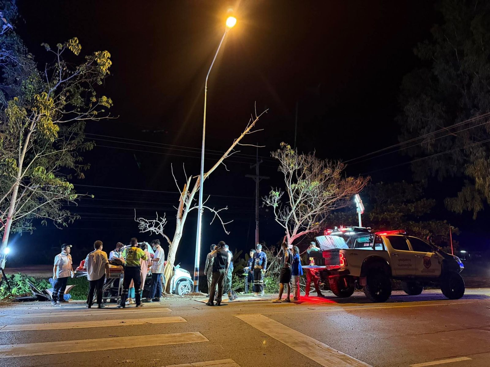 เวลา 00.05 น. วันที่ 23 มีนาคม 2569 รับแจ้งจาก หน่วยกู้ภัยแม่โจ้ มีอุบัติเหตุรถนั่งส่วนบุคคลเสียหลักจนต้นไม้ข้างทาง และมีผู้บาดเจ็บติดอยู่ภายในยานพาหนะ ริมถนนหมายเลข 1001 ใกล้เคียงโรงเรียนแม่หอพระวิทยาคม ในพื้นที่ อ.แม่แตง จ.เชียงใหม่