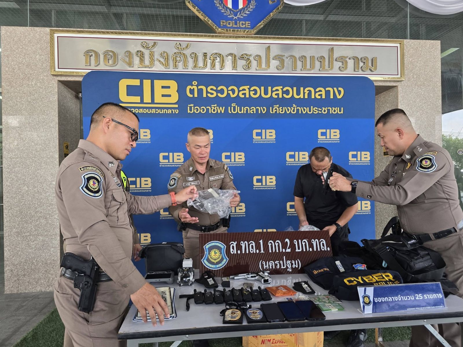 นอกจากนี้ยังพบอุปกรณ์สวมรอยเจ้าหน้าที่เต็มรูปแบบ อุปกรณ์สอดแนมโดรน โดยไม่ได้รับอนุญาตจากเจ้าพนักงาน และวิทยุสื่อสารแบบใส่ซิมมากถึง 8 เครื่อง และยังพบเสื้อเกราะกันกระสุนสีดำ สัญลักษณ์ตำรวจท่องเที่ยว, เสื้อคลุมสีน้ำเงินหน่วยงาน สอท.2 (ตำรวจไซเบอร์), เสื้อกั๊กสีน้ำเงินติดสัญลักษณ์ สืบสวน ตำรวจท่องเที่ยว, ป้ายแขวนคอมีตัวหนังสือ สำนักงานตำรวจแห่งชาติ และ ยาไอซ์ 1 ถุงเล็ก ซุกซ่อนอยู่ภายในรถ
