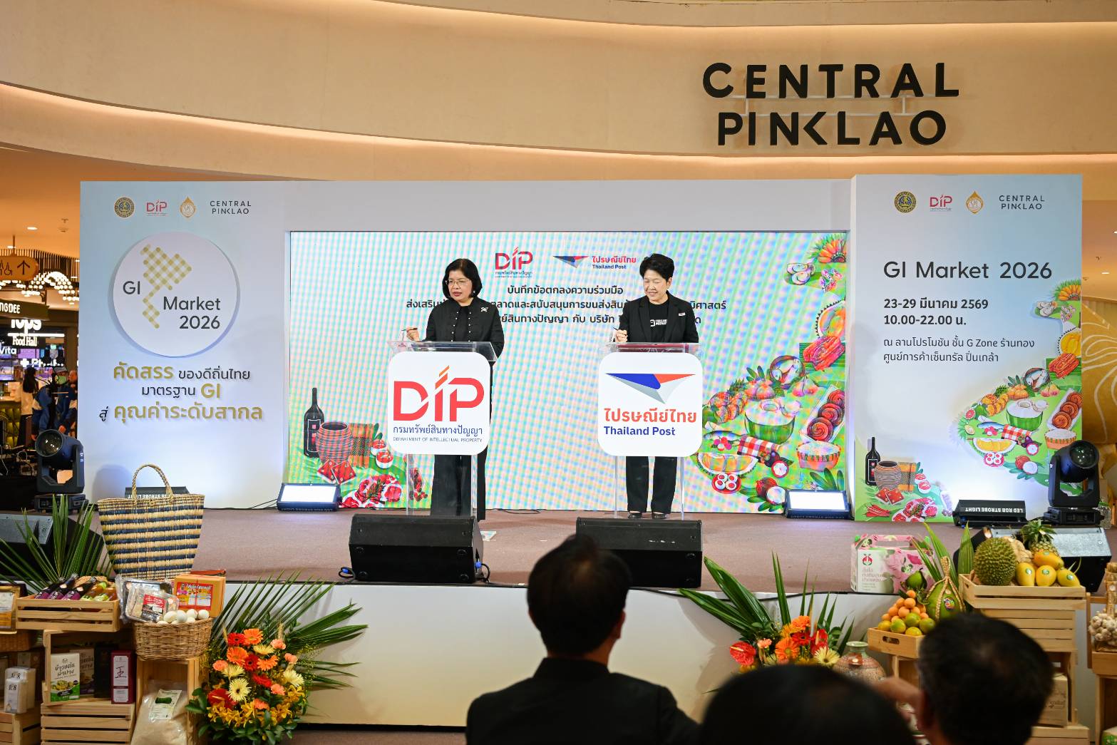 กรุงเทพฯ 23 มีนาคม 2569 – บริษัท ไปรษณีย์ไทย จำกัด ร่วมกับ กรมทรัพย์สินทางปัญญา เดินหน้าผนึกกำลังยกระดับสินค้า สิ่งบ่งชี้ทางภูมิศาสตร์ (GI) ของไทยสู่ตลาดในวงกว้างอย่างเป็นระบบ ครอบคลุมตั้งแต่การพัฒนา การสร้างมูลค่าเพิ่ม ไปจนถึงการขยายช่องทางการจำหน่ายผ่านไปรษณีย์ และ ThailandPostMart ร่วมถึงให้ผู้ประกอบการสามารถส่งสินค้า GI ในราคาพิเศษ เพื่อขับเคลื่อนเศรษฐกิจชุมชน พร้อมสร้างรายได้ให้กับเกษตรกร ผู้ผลิต และผู้ประกอบการในท้องถิ่นอย่างยั่งยืน