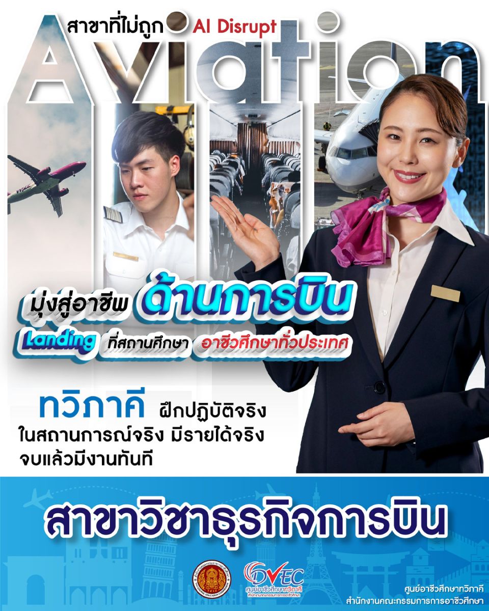หากคุณมีใจรักงานบริการ สนใจในอุตสาหกรรมการบิน และอยากมีอาชีพมั่นคง สาขาวิชาธุรกิจการบิน - ทวิภาคี คือตัวเลือกที่ใช่!