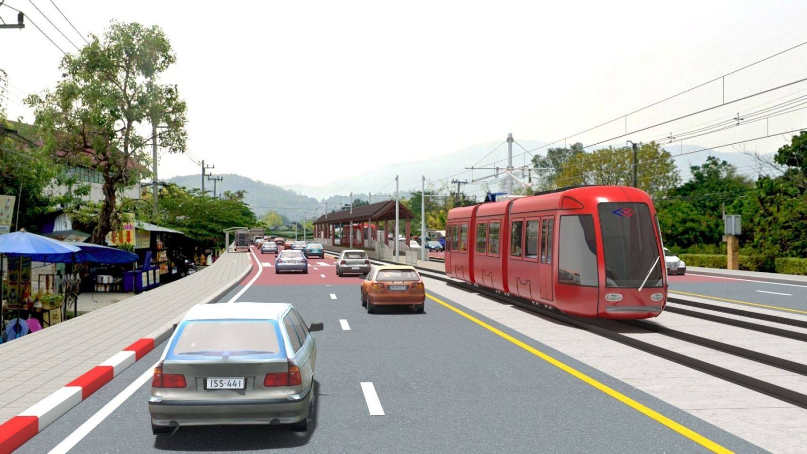 สำหรับผลการศึกษาโครงการ ได้ออกแบบระบบขนส่งมวลชนจังหวัดเชียงใหม่ สายสีแดง ช่วงแยกแม่เหียะสมานสามัคคี – อุทยานหลวงราชพฤกษ์ เป็นระบบรถรางไฟฟ้า (Tramway) ซึ่งมีลักษณะเป็นระบบรถไฟฟ้าที่วิ่งไปตามทางวิ่งหรือรางบนถนน มีจุดเริ่มต้นบริเวณช่วงแยกแม่เหียะสมานสามัคคี โดยวิ่งไปตามทางหลวงหมายเลข 108 เป็นระยะทางประมาณ 2.3 กิโลเมตร จากนั้นเลี้ยวขวาที่แยกพืชสวนโลก วิ่งไปตามทางหลวงชนบทหมายเลข ชม.3028 และตัดผ่านทางหลวงหมายเลข 121 ที่แยกราชพฤกษ์ ไปสิ้นสุดที่อุทยานหลวงราชพฤกษ์ บริเวณวงเวียนช้าง