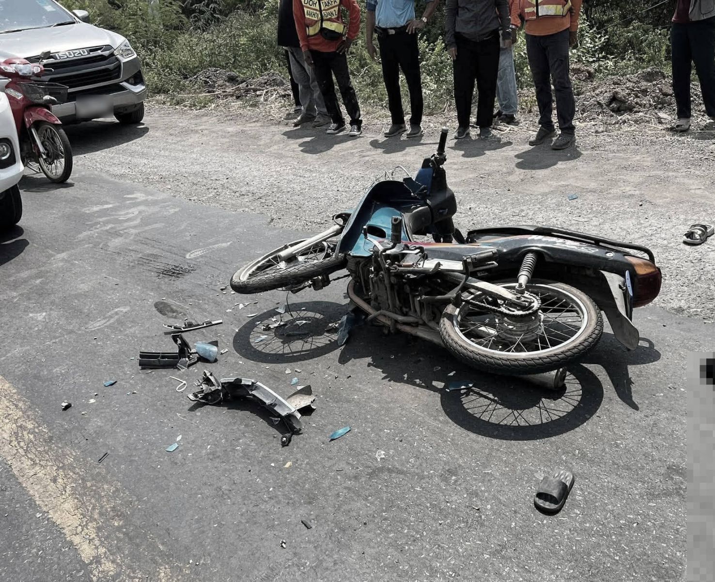 ที่เกิดเหตุ พบรถกระบะ โตโยต้า สีขาว ป้ายทะเบียน นครสวรรค์ ลักษณะชนกับ รถจักรยานยนต์ ฮอนด้า เวฟ สีดำ ป้ายทะเบียน นครสวรรค์ ใกล้กันพบร่างผู้บาดเจ็บ 1 ราย ทางหน่วยกู้ชีพได้ตรวจสอบแล้วไม่พบสัญญาณชีพ ยืนยันเสียชีวิตในที่เกิดเหตุ เป็นผู้หญิง อายุประมาณ 41 ปี