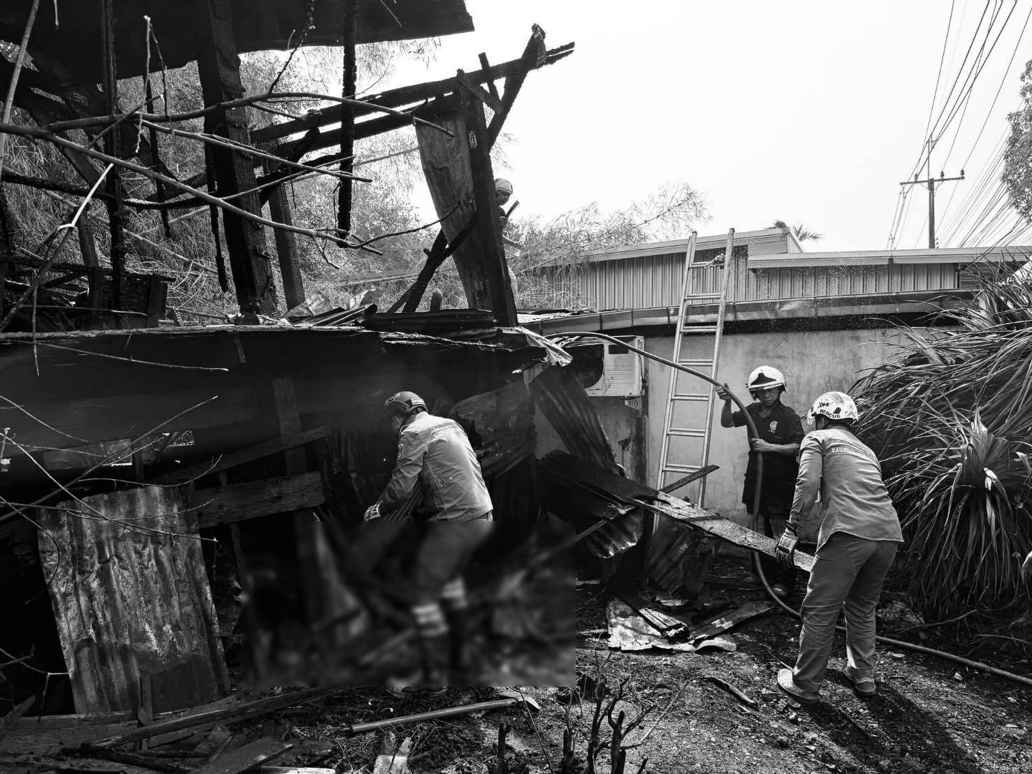 ไฟไหม้บ้านเรือนประชาชน เจ้าหน้าที่พร้อมรถดับเพลิงระดมฉีดน้ำ หลังเพลิงสงบ พบร่างคุณตาวัย 73 ปีเสียชีวิตคากองเพลิง จ.กำแพงเพชร