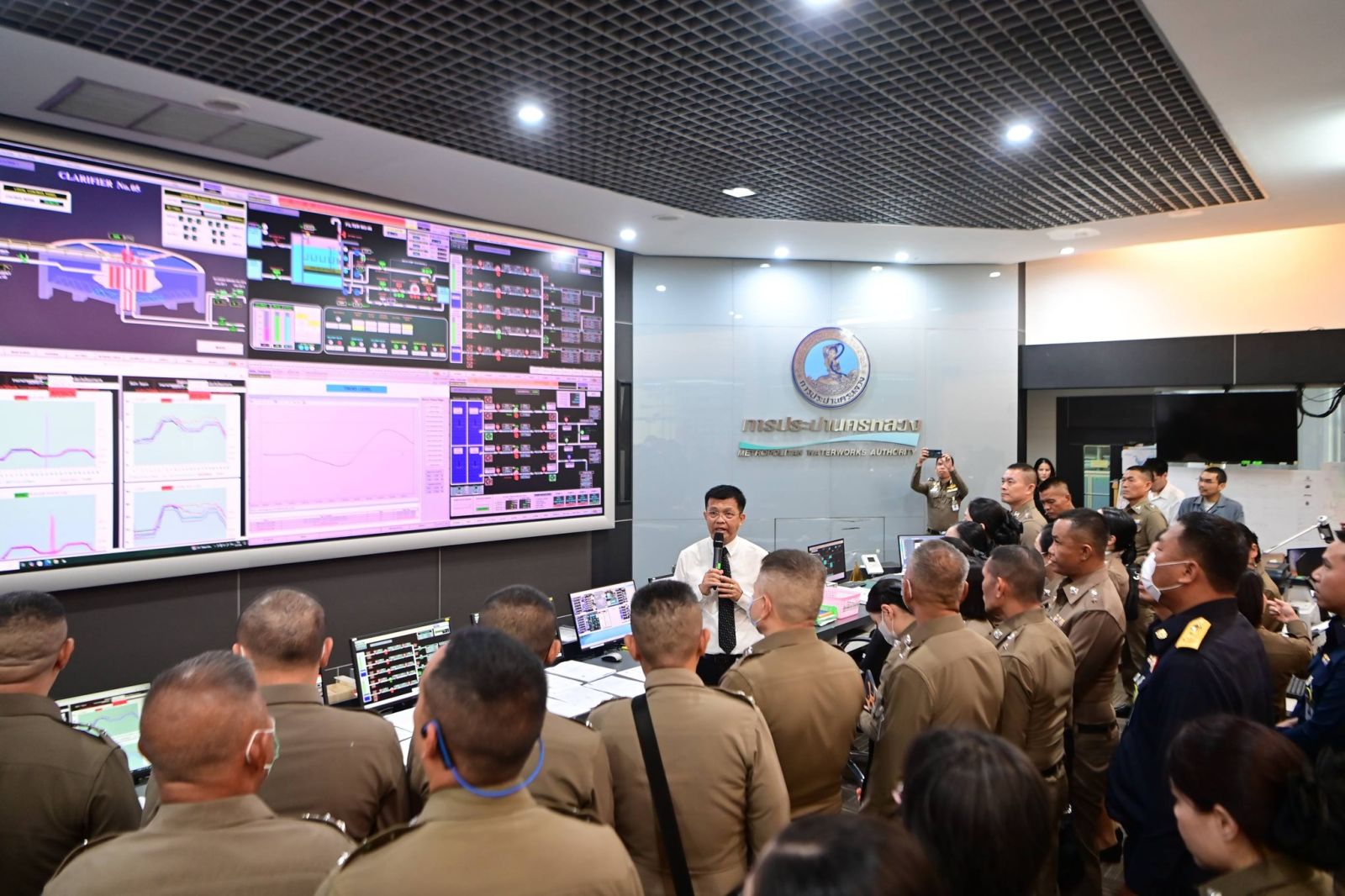 เมื่อวันที่ 25 มีนาคม พ.ศ. 2569 เวลา 09.30 น. ณ ห้องออดิทอเรียม ชั้น 5 อาคารสุทธิอุทกากร การประปานครหลวง (กปน.) เปิดบ้านต้อนรับวิทยาลัยการตำรวจ หลักสูตรผู้กำกับการ รุ่นที่ 156 ศึกษาดูงานเกี่ยวกับกระบวนการผลิตน้ำประปา เพื่อเรียนรู้การใช้เทคโนโลยีทันสมัยในการผลิตน้ำสะอาดที่ได้มาตรฐานขององค์การอนามัยโลก (WHO) ตรงตามหลักการออกแบบระบบน้ำสะอาด มีมาตรฐานการควบคุมคุณภาพน้ำ ตลอดจนการบริหารจัดการขั้นตอนต่าง ๆ อย่างมีประสิทธิภาพ โดยมี นายสมศักดิ์ ปัสนานนท์ ผู้ช่วยผู้ว่าการการประปานครหลวง (กปน.) ให้การต้อนรับ และร่วมบรรยาย พร้อมแลกเปลี่ยนความคิดเห็นตอบข้อซักถามเกี่ยวกับการศึกษาดูงานในครั้งนี้ด้วย