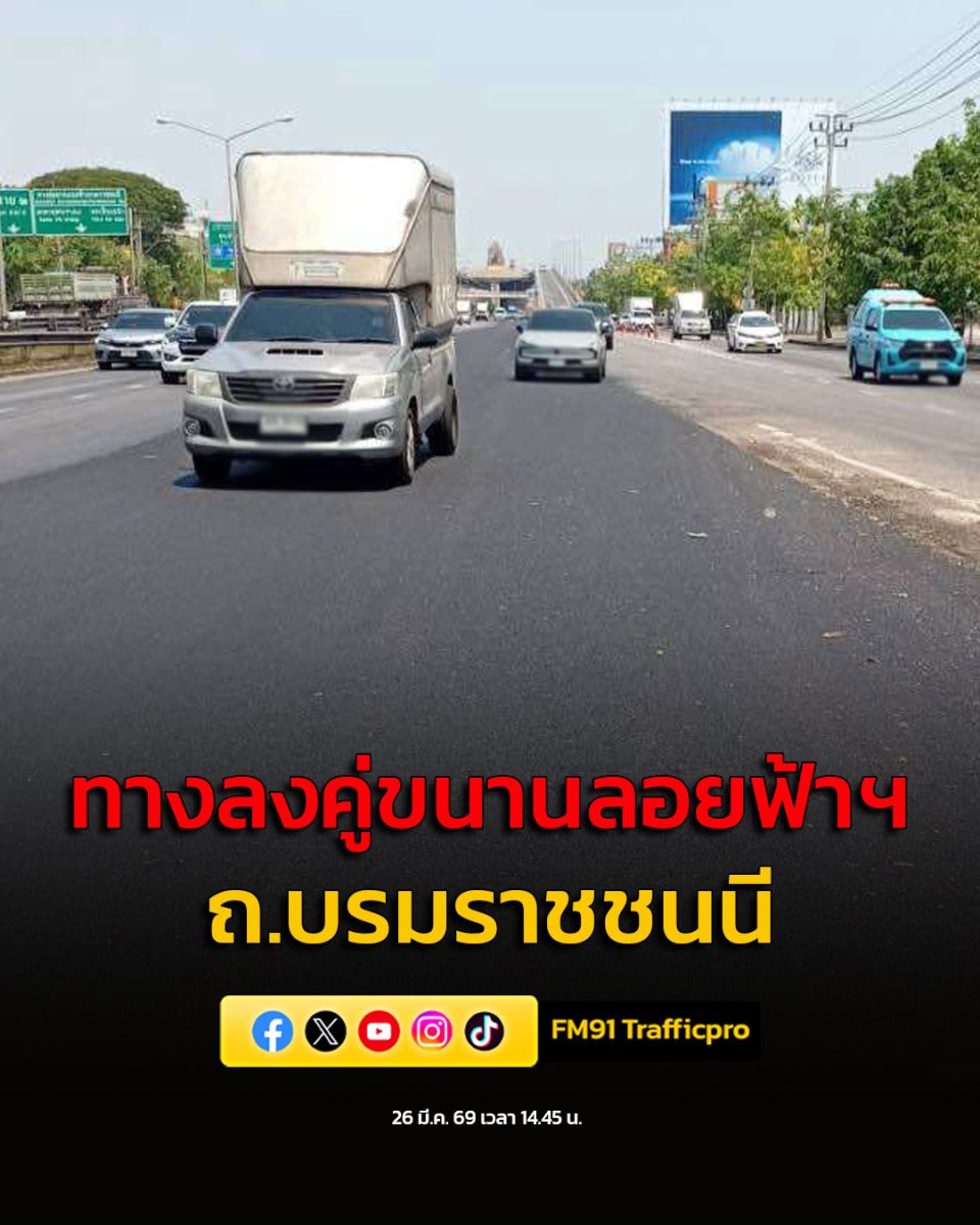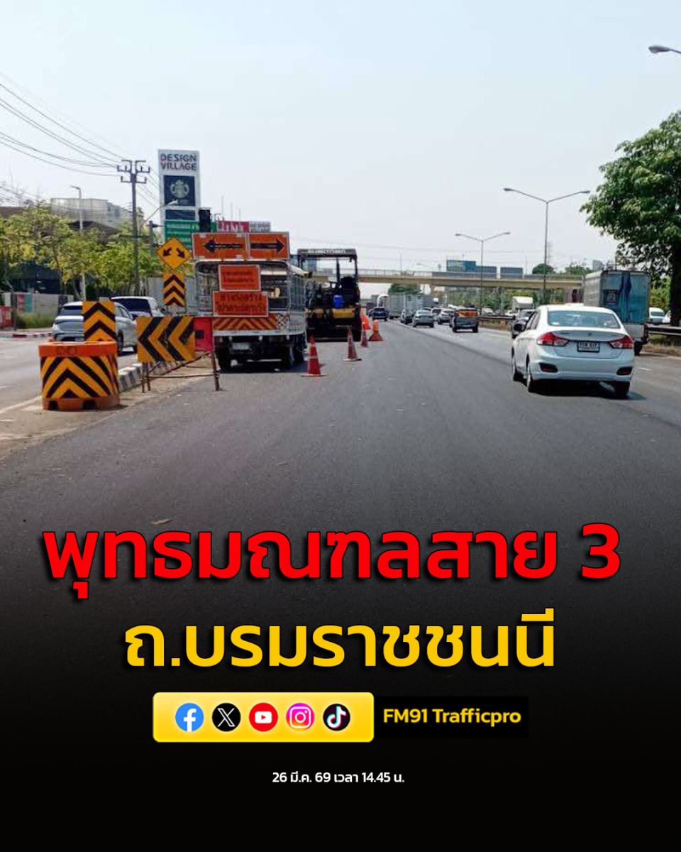 26 มี.ค. 69 เวลา 14.45 น. ถ.บรมราชชนนี ขาออก ทางลงคู่ขนานลอยฟ้าฯ มุ่งหน้า พุทธมณฑลสาย 3
