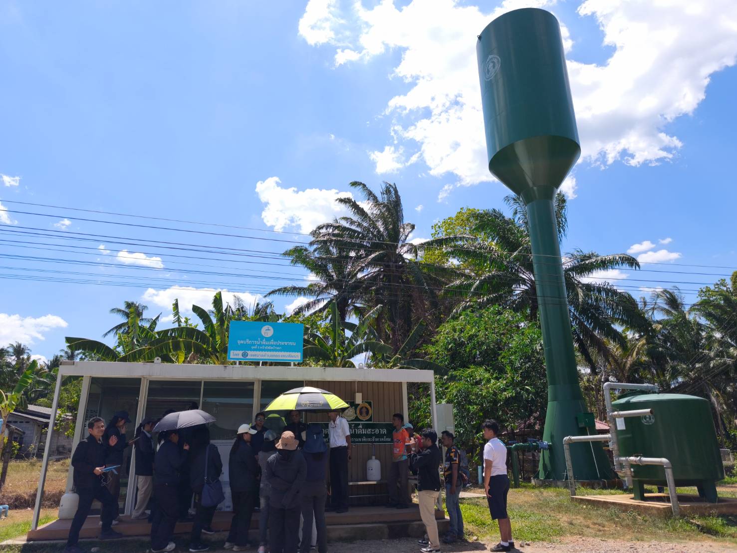 จากนั้นได้เดินทางไปติดตามการใช้ประโยชน์ โครงการพัฒนาน้ำบาดาลเพื่อความมั่นคงระดับชุมชน ประจำปีงบประมาณ พ.ศ. 2566 ณ บ้านนา หมู่ที่ 3 ตำบลคลองพน อำเภอคลองท่อม จังหวัดกระบี่ ซึ่งมีประชาชนใช้น้ำอุปโภคบริโภค ประมาณ 250 ครัวเรือน รูปแบบโครงการประกอบด้วย บ่อน้ำบาดาลขนาด 6 นิ้ว จำนวน 2 บ่อ เครื่องสูบน้ำไฟฟ้าแบบมอเตอร์จุ่มใต้น้ำ ขนาด 3 แรงม้า จำนวน 2 ชุด หอถังเหล็กเก็บน้ำชนิดรักษาแรงดัน ขนาด 100 ลูกบาศก์เมตร จำนวน 1 ถัง ถังกรองสนิมเหล็กขนาดใหญ่ จุดจ่ายน้ำถาวร ถังเก็บน้ำดิบ และอาคารติดตั้งระบบปรับปรุงคุณภาพน้ำแบบ RO พร้อมรับฟังรายงานการใช้ประโยชน์โครงการ การบริหารจัดการทรัพยากรน้ำบาดาลจากประชาชนในพื้นที่ ทั้งนี้ รองอธิบดีกรมทรัพยากรน้ำบาดาลและผู้แทนสำนักงบประมาณได้ให้ข้อเสนอแนะแนวทางการแก้ไขปัญหาและอุปสรรคในการดำเนินงานแก่ประชาชนในพื้นที่ด้วย