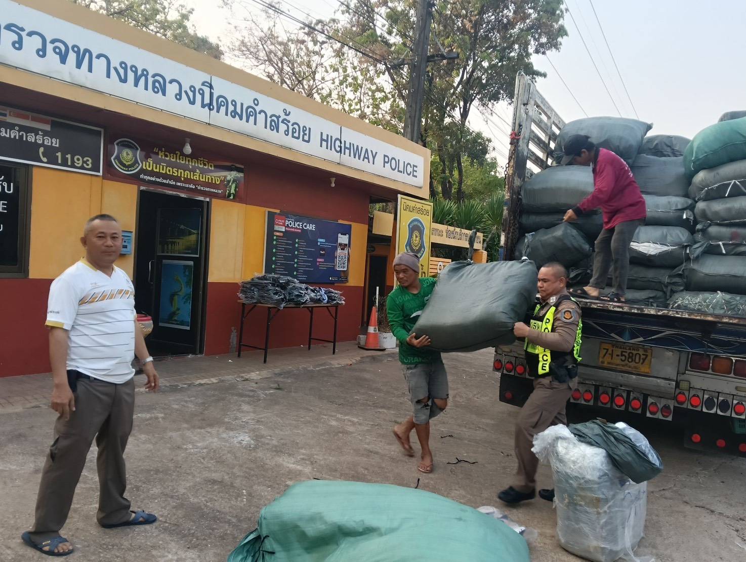 จากการตรวจค้น พบสินค้าปลอมจำนวนมาก หากสามารถหลุดไปยังตลาดปลายทาง จะมี มูลค่าสูงถึง 20 กว่าล้านบาท จึงได้นำตัวนายสุข (นามสมมุติ) อายุ 51 ปี พร้อมด้วยรถยนต์และสินค้าดังกล่าว ไปตรวจสอบพร้อมนับรายการสินค้าโดยละเอียด ที่หน่วยบริการตำรวจทางหลวงนิคมคำสร้อย ผลการตรวจสอบพบสินค้าไม่ระบุที่มา เจ้าหน้าที่ตำรวจชุดจับกุม จึงได้แจ้งให้นายสุข (นามสมมุติ) อายุ 51 ปี ทราบว่า สินค้าดังกล่าวต้องมีเอกสารแสดงที่มาอย่างชัดเจน จึงได้บันทึกตรวจยึดไว้เพื่อทำการตรวจสอบต่อไป และได้นำสินค้าดังกล่าวส่ง สภ.นิคมคำสร้อย เพื่อตรวจสอบอย่างละเอียดอีกครั้ง หากพบฝ่าฝืนกฎหมายจริง นำส่งดำเนินคดีตามกฎหมายต่อไป