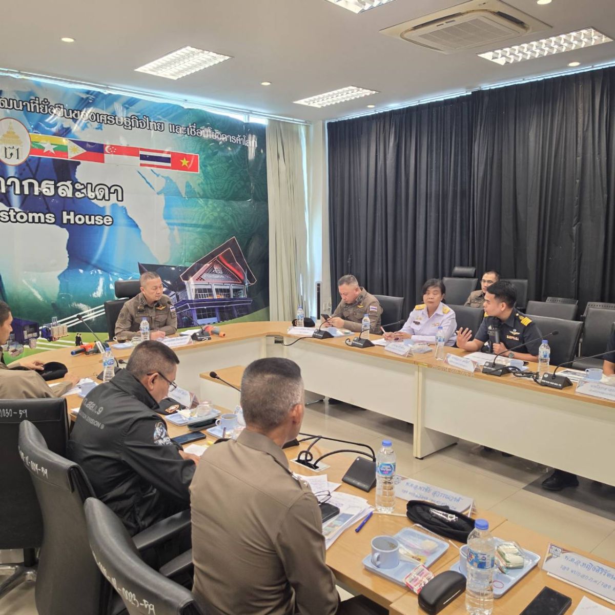 ทั้งนี้ พล.ต.ต.พงพิพัฒน์ ศิริพรวิวัฒน์ รองผู้บัญชาการตำรวจตระเวนชายแดน, พล.ต.ต.ธีรศักดิ์ ไชยโยธา ผู้บังคับการตำรวจภูธรจังหวัดสงขลา, พล.ต.ต.มารุต เรืองจินตนา ผู้บังคับการสืบสวนสอบสวน ตำรวจภูธรภาค 9, ผู้แทนด่านศุลกากรสะเดา, ผู้แทนสรรพสามิตจังหวัดสงขลา, ผู้แทนฝ่ายปกครองอำเภอสะเดา, ผู้บังคับกองร้อยตำรวจตระเวนชายแดน, ผู้แทนหน่วยเฉพาะกิจทหารราบที่ 5 และผู้แทนกองบังคับการตรวจคนเข้าเมือง 6 เข้าร่วมประชุมอย่างพร้อมเพรียง