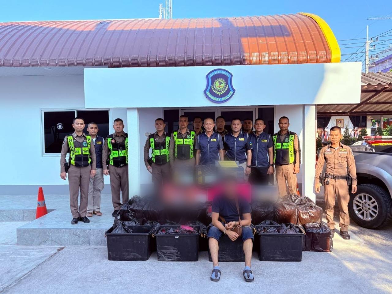 ตำรวจทางหลวง ไล่ล่าระทึก 5 กม. รถกระบะซิ่งหนีตำรวจ สุดท้ายจนมุม ยึดเหล้าเถื่อน 600 ขวด