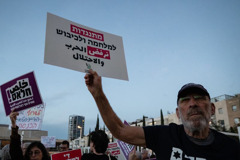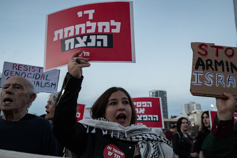 เทลอาวีฟ, 29 มี.ค. (ซินหัว) -- ประชาชนจำนวนหนึ่งออกมารวมตัวกันพร้อมชูป้ายประท้วงต่อต้านสงคราม ในกรุงเทลอาวีฟของอิสราเอล โดยเมื่อวันเสาร์ (28 มี.ค.) ที่ผ่านมา ประชาชนได้ออกมาชุมนุมประท้วงในกรุงเทลอาวีฟ เพื่อแสดงจุดยืนคัดค้านปฏิบัติการทางทหารของสหรัฐฯ และอิสราเอล พร้อมทั้งเรียกร้องให้ทั้งสองประเทศยุติการทำสงครามทั้งหมด