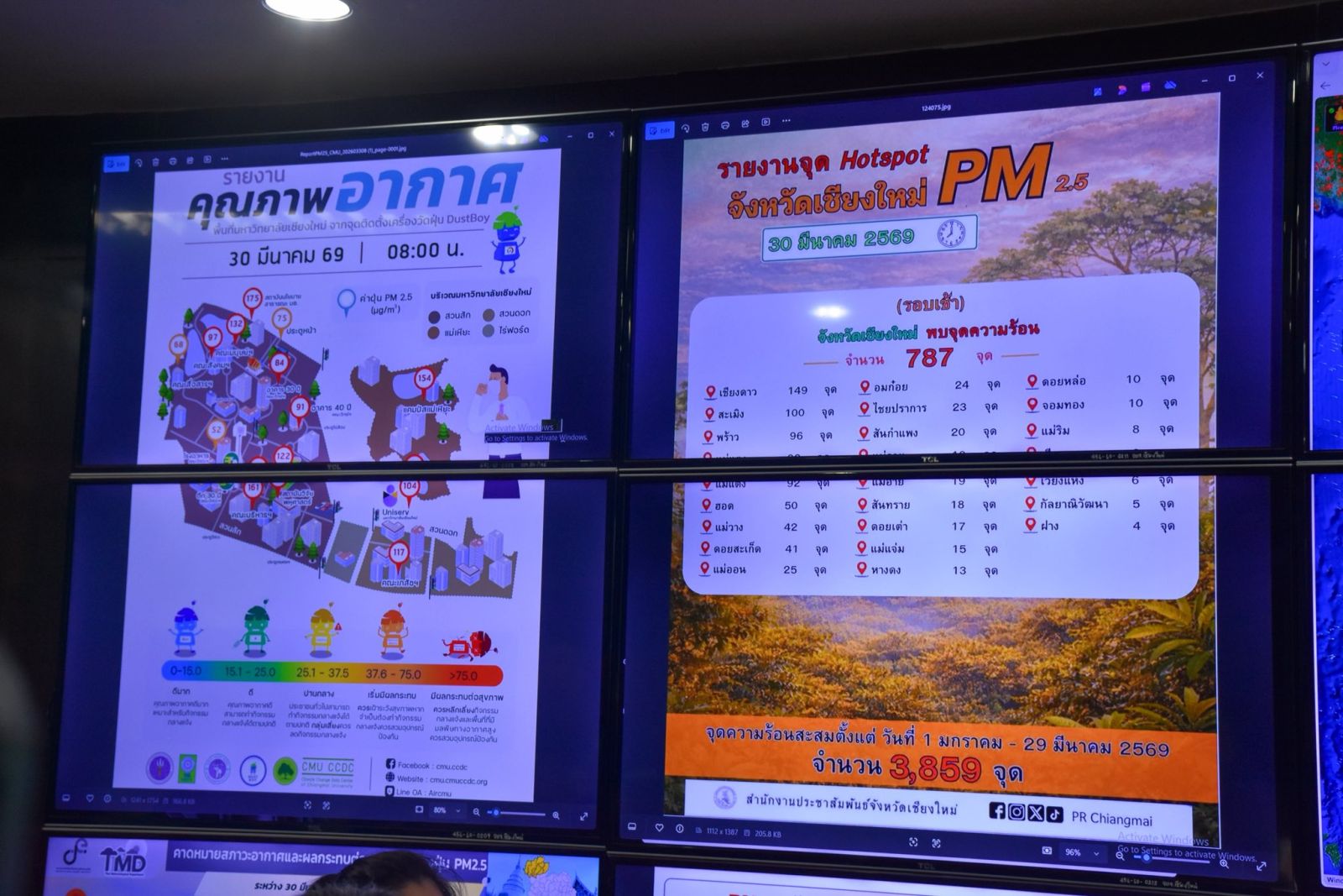 นายรัฐพล นราดิศร ผู้ว่าราชการจังหวัดเชียงใหม่ ได้รายงานสถานการณ์ในภาพรวมว่า ในช่วงสัปดาห์ระหว่างวันที่ 23-30 มีนาคม ที่ผ่านมา พบจุดความร้อนพุ่งสูงขึ้นอย่างก้าวกระโดด โดยเฉพาะเช้าวันนี้ (30 มีนาคม 2569) เกิดจุดความร้อนสูงถึง 787 จุด ซึ่งส่วนใหญ่อยู่ในพื้นที่ป่าอนุรักษ์ที่มีความลาดชันสูงและยากแก่การเข้าถึงด้วยกำลังภาคพื้นดิน และในขณะที่จังหวัดเชียงใหม่ควบคุมจุดความร้อนนั้น ประเทศเพื่อนบ้านอย่างเมียน เกิดจุดความร้อนพุ่งสูงกว่า 6,000 จุด และประเทศลาวอีกกว่า 2,700 จุด และเป็นช่วงที่กระแสลมพัดเข้าสู่จังหวัดเชียงใหม่ ทำให้ฝุ่นควันมหาศาลจากด้านตะวันตกเข้ามาสะสมในพื้นที่จังหวัดเชียงใหม่อย่างต่อเนื่อง