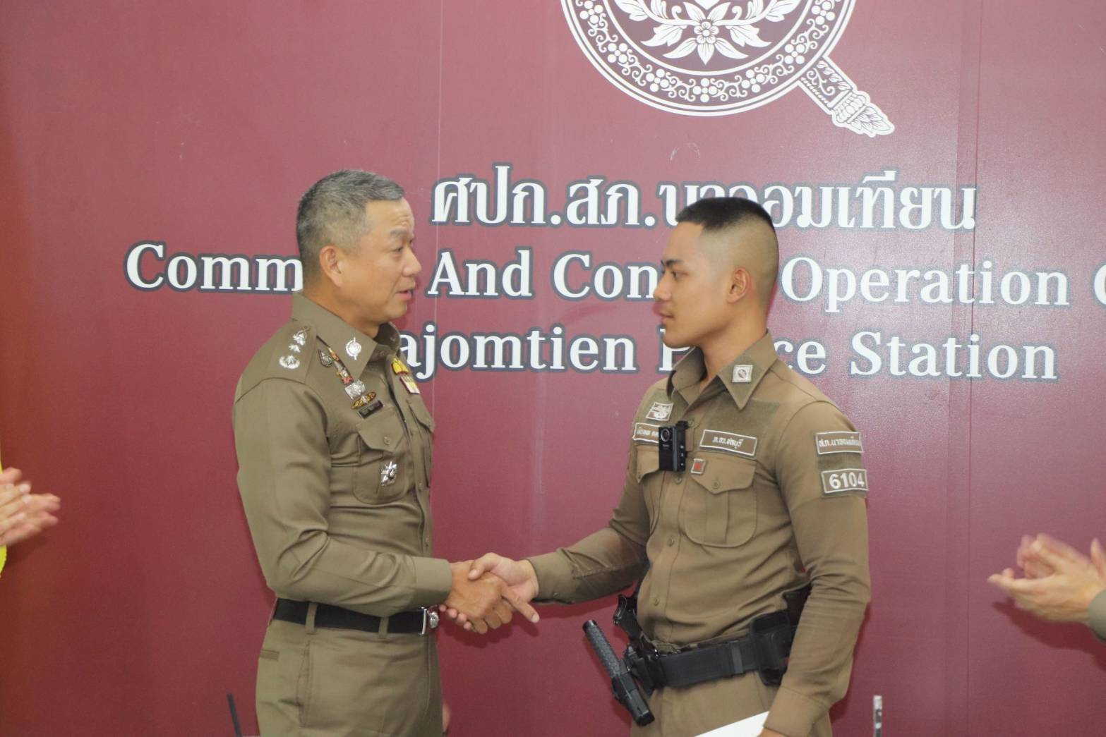 ศจร.ตร. มอบรางวัลอีกหนึ่ง "จราจรกู้ชีพ" สภ.นาจอมเทียน ชื่นชมทำหน้าที่เข้มแข็ง ควบคู่ช่วยชีวิตประชาชน
