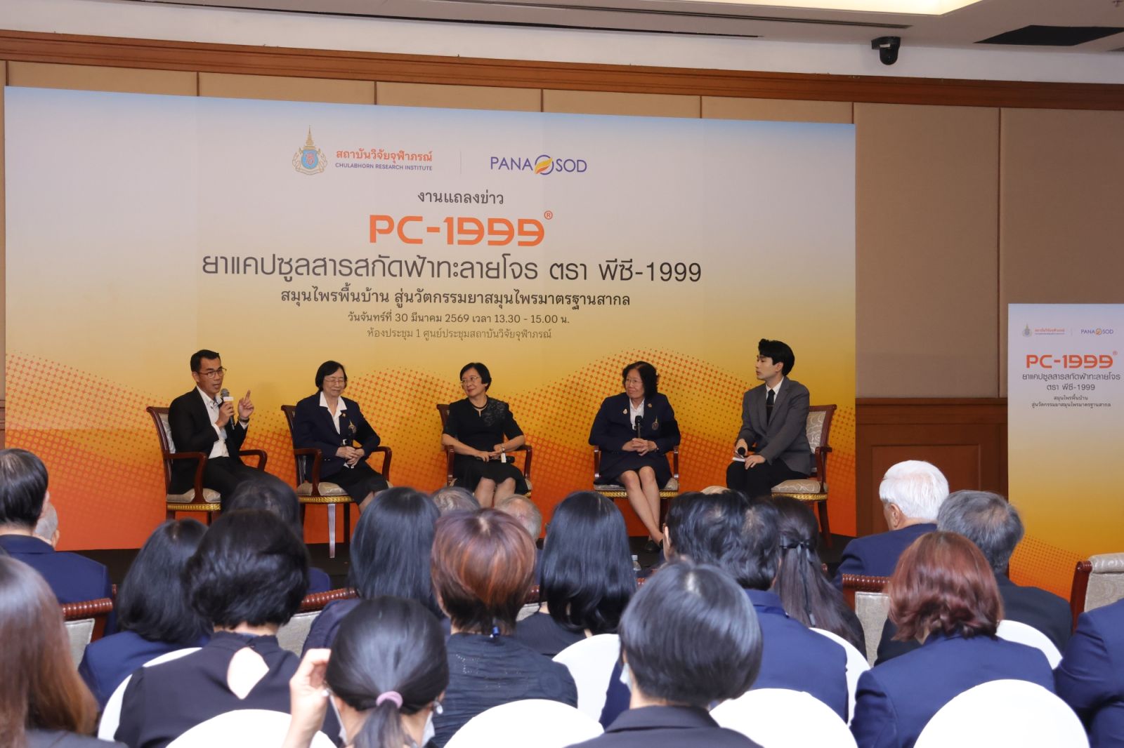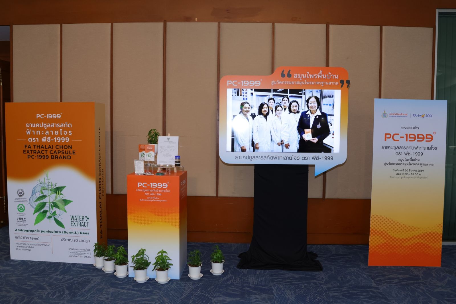 สถาบันวิจัยจุฬาภรณ์เปิดตัวผลิตภัณฑ์ “ยาแคปซูลสารสกัดฟ้าทะลายโจร ตรา พีซี-1999” (PC-1999) สมุนไพรพื้นบ้าน สู่นวัตกรรมยาสมุนไพรมาตรฐานสากล ณ ศูนย์ประชุมสถาบันวิจัยจุฬาภรณ์
