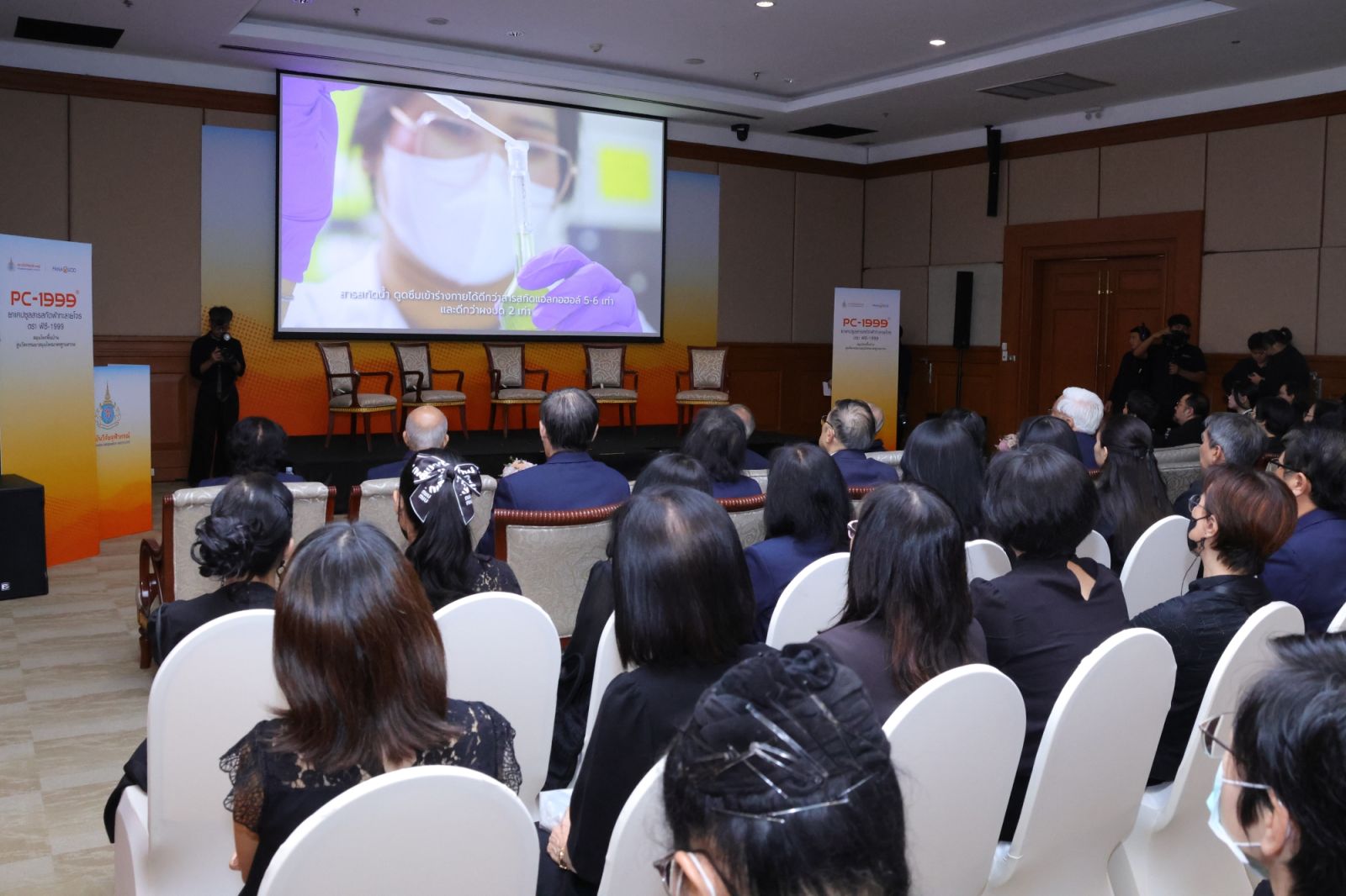 ภายในงานมีการจัดเสวนาในหัวข้อ “ทำไมต้องเป็นฟ้าทะลายโจร PC-1999”โดยมี รองศาสตราจารย์ ดร.เภสัชกรหญิงจุฑามาศ สัตยวิวัฒน์ รองประธานสถาบันวิจัยจุฬาภรณ์ ฝ่ายธุรการวิทยาศาสตร์ และผู้อำนวยการห้องปฏิบัติการวิจัยเภสัชวิทยา ศาสตราจารย์เกียรติคุณ แพทย์หญิงสยมพร ศิรินาวิน อาจารย์ประจำสาขาวิชาโรคติดเชื้อ คณะแพทยศาสตร์โรงพยาบาลรามาธิบดี มหาวิทยาลัยมหิดล รองศาสตราจารย์ ดร.ดวงจิตต์ พนมวัน ณ อยุธยา ที่ปรึกษาหน่วยวิจัยเพื่อการประยุกต์ใช้ สถาบันวิจัยจุฬาภรณ์ และคุณพิษณุ อุชุวัฒน์ กรรมการผู้จัดการบริษัท ปานะโอสถ จำกัด ร่วมถ่ายทอดแนวคิดกระบวนการวิจัยและการพัฒนาจากห้องปฏิบัติการสู่การถ่ายทอดเทคโนโลยีการผลิตสารสกัดและเทคโนโลยีการผลิตต้นแบบของผลิตภัณฑ์มาตรฐานฟ้าทะลายโจรแก่ภาคอุตสาหกรรมเพื่อมุ่งเน้นการยกระดับนวัตกรรม และสามารถเพิ่มมูลค่าผลิตภัณฑ์ฯ ในเชิงพาณิชย์ได้ นอกจากนี้ ยังมีการนำเสนอวีดิทัศน์แนะนำผลิตภัณฑ์ฯ พร้อมความเป็นมาของการดำเนินโครงการพัฒนาผลิตภัณฑ์ PC-1999 ที่มีมาอย่างต่อเนื่อง