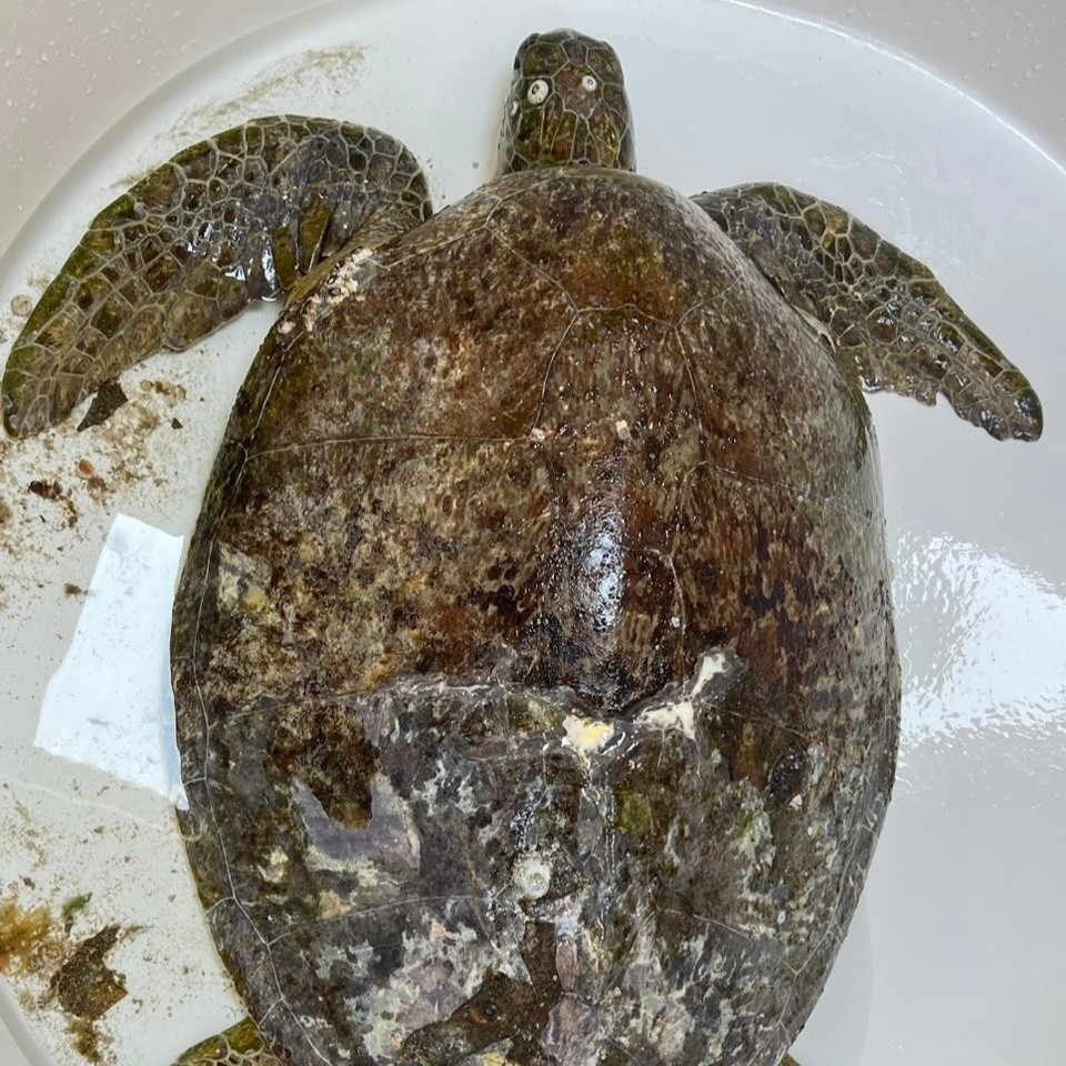 จากการตรวจสอบพบเป็นเต่าตนุ (Chelonia mydas) เพศเมีย โตเต็มวัย ขนาดกระดองกว้าง 86 เซนติเมตร กระดองยาว 99 เซนติเมตร น้ำหนักประมาณ 86.7 กิโลกรัม ความสมบูรณ์ของร่างกายอยู่ในระดับปกติ แต่มีอาการอ่อนแรง ลอยอยู่ผิวน้ำตลอดเวลา ไม่สามารถดำน้ำได้ พบเพรียงและสาหร่ายปกคลุมทั่วลำตัว มีรอยแผลเป็นขนาดใหญ่บริเวณกลางกระดอง และกระดองส่วนท้ายมีรอยแตกยาว คาดว่าสาเหตุเกิดจากการถูกวัตถุแข็งไม่มีคมกระแทก ปัจจุบันสัตวแพทย์ได้วินิจฉัยโรคเบื้องต้น และเฝ้าระวังอาการอย่างใกล้ชิดในระยะวิกฤติ ณ ศูนย์ช่วยชีวิตสัตว์ทะเลหายากสิรีธาร ศวอบ.